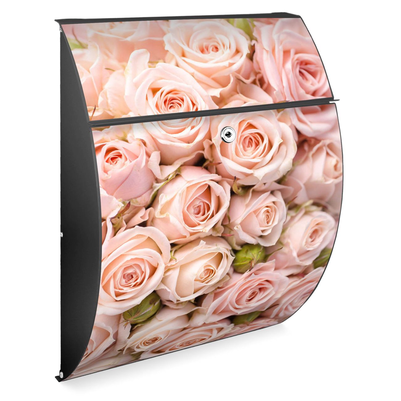 FUNKTION: DESIGN: Das Modell Riviera mit Motiv Rosenbouquet hat ein sehr ansprechendes und zeitloses Design. Heben Sie Sich von der tristen grauen Masse ab, ohne auf Funktionalität zu verzichten. Der integrierte Öffnungsstopp ermöglicht eine einfache Handhabung beim Entnehmen der Post. DETAILS: Der Postkasten besteht aus vollflächig verzinktem Stahl welcher in Anthrazit lackiert wurde. Das Motiv besteht aus einer wetter- und UV-festen Folie, die mit einem Schutzlaminat überzogen ist, durch die Ihren Briefkasten zusätzlich vor Kratzern geschützt ist. Sie erhalten 2 Schlüssel sowie das passende Montagematerial. NUTZEN: Sie können den Briefkasten sowohl als Wandbriefkasten montieren oder einen passenden Ständer kaufen und als Standbriefkasten einbetonieren. Die Größe bietet genügend Platz für Sendungen aller Art, der Einwurf fasst auch größere A4 Sendungen. BANJADO: Ihr Briefkasten wird in Sachsen in einer kleinen Manufaktur von Hand veredelt. Die Motivfolie ist lösungsmittelfrei und schutzlaminiert, dies sorgt für einen langen Halt. Wir legen großen Wert auf die Verbindung von Funktionalität und Design. Sie erhalten Handarbeit aus Sachsen.
