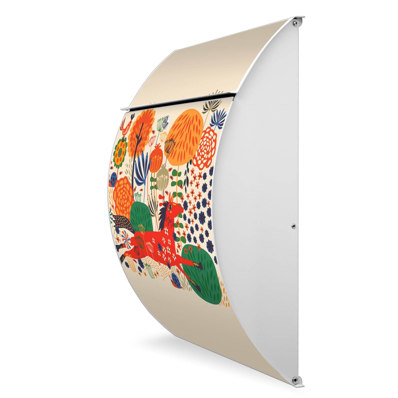 Der weiße Burg Wächter Design Briefkasten mit Motiv Rotes Pferd bietet Ihnen mit seinem Fassungsvermögen genügend Platz auch für große A4 Sendungen. Auf Wunsch können Sie bei uns auch den passenden Ständer kaufen und so aus dem Wandbriefkasten einen Standbriefkasten machen.