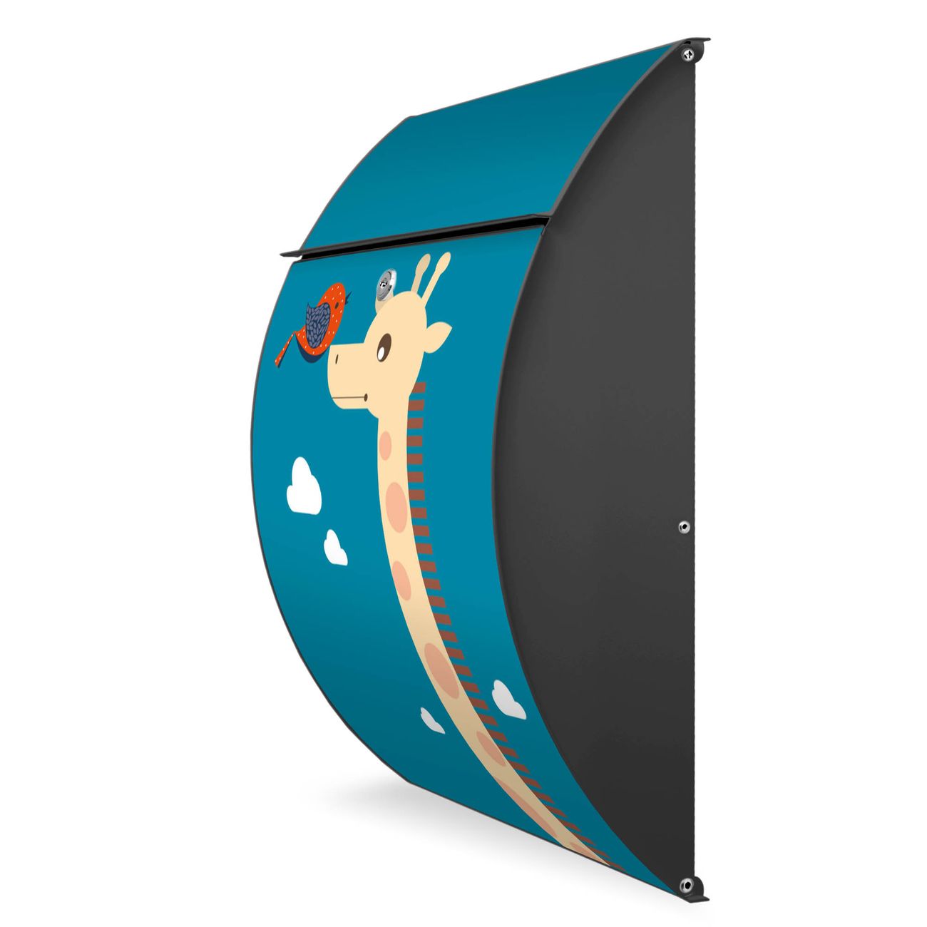 FUNKTION: DESIGN: Das Modell Riviera mit Motiv Sally und Georg hat ein sehr ansprechendes und zeitloses Design. Heben Sie Sich von der tristen grauen Masse ab, ohne auf Funktionalität zu verzichten. Der integrierte Öffnungsstopp ermöglicht eine einfache Handhabung beim Entnehmen der Post. DETAILS: Der Postkasten besteht aus vollflächig verzinktem Stahl welcher in Anthrazit lackiert wurde. Das Motiv besteht aus einer wetter- und UV-festen Folie, die mit einem Schutzlaminat überzogen ist, durch die Ihren Briefkasten zusätzlich vor Kratzern geschützt ist. Sie erhalten 2 Schlüssel sowie das passende Montagematerial. NUTZEN: Sie können den Briefkasten sowohl als Wandbriefkasten montieren oder einen passenden Ständer kaufen und als Standbriefkasten einbetonieren. Die Größe bietet genügend Platz für Sendungen aller Art, der Einwurf fasst auch größere A4 Sendungen. BANJADO: Ihr Briefkasten wird in Sachsen in einer kleinen Manufaktur von Hand veredelt. Die Motivfolie ist lösungsmittelfrei und schutzlaminiert, dies sorgt für einen langen Halt. Wir legen großen Wert auf die Verbindung von Funktionalität und Design. Sie erhalten Handarbeit aus Sachsen.