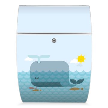 Der weiße Burg Wächter Design Briefkasten mit Motiv Schlafender Wal bietet Ihnen mit seinem Fassungsvermögen genügend Platz auch für große A4 Sendungen. Auf Wunsch können Sie bei uns auch den passenden Ständer kaufen und so aus dem Wandbriefkasten einen Standbriefkasten machen.