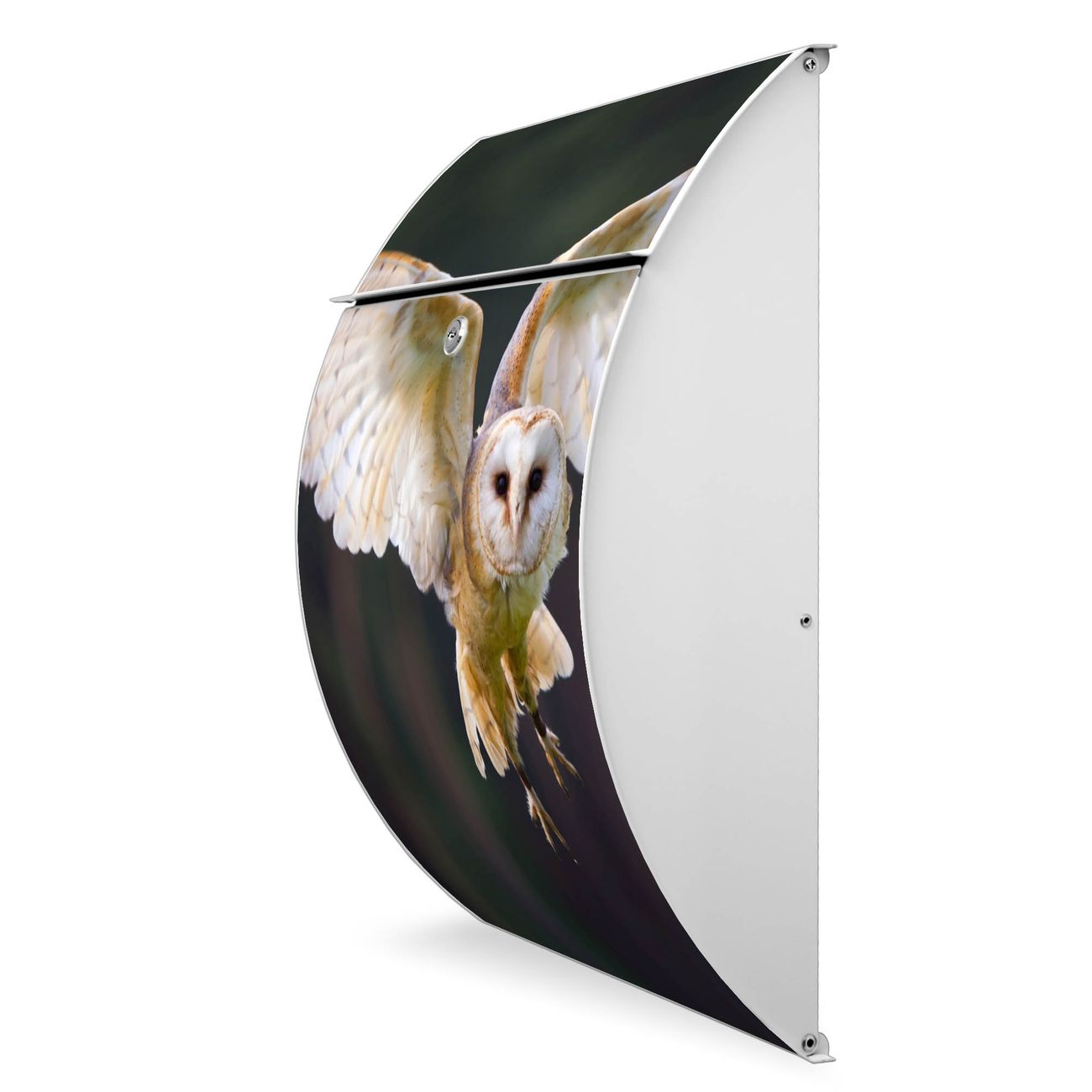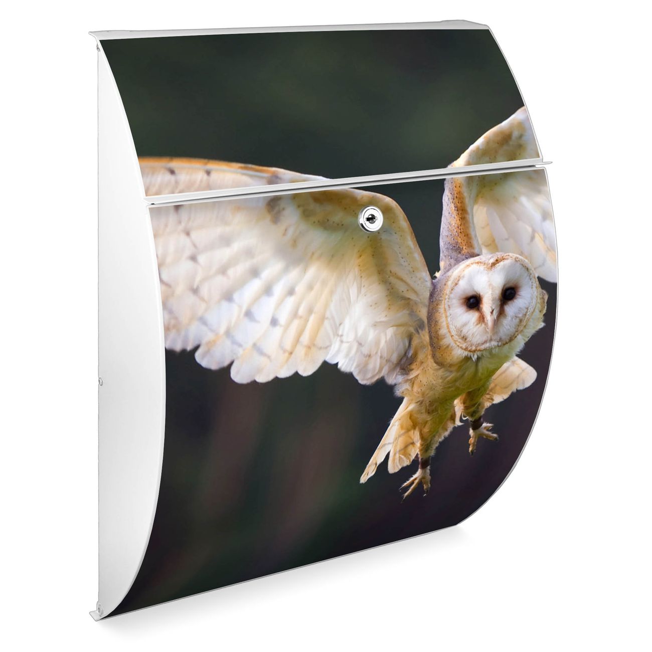 Der weiße Burg Wächter Design Briefkasten mit Motiv Schleiereule bietet Ihnen mit seinem Fassungsvermögen genügend Platz auch für große A4 Sendungen. Auf Wunsch können Sie bei uns auch den passenden Ständer kaufen und so aus dem Wandbriefkasten einen Standbriefkasten machen.