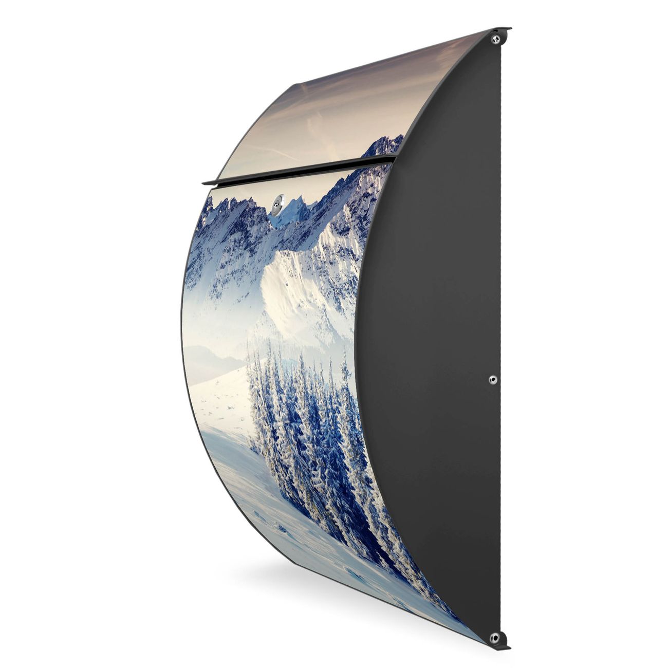 Der Burg Wächter Design Briefkasten mit Motiv Schneebedeckte Berge bietet Ihnen mit seinem Fassungsvermögen genügend Platz auch für große A4 Sendungen. Auf Wunsch können Sie bei uns den passenden Ständer kaufen und so aus dem Wandbriefkasten einen Standbriefkasten machen.