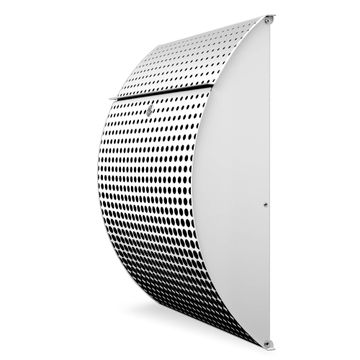 Der weiße Burg Wächter Design Briefkasten mit Motiv Schwarz Weiß bietet Ihnen mit seinem Fassungsvermögen genügend Platz auch für große A4 Sendungen. Auf Wunsch können Sie bei uns auch den passenden Ständer kaufen und so aus dem Wandbriefkasten einen Standbriefkasten machen.