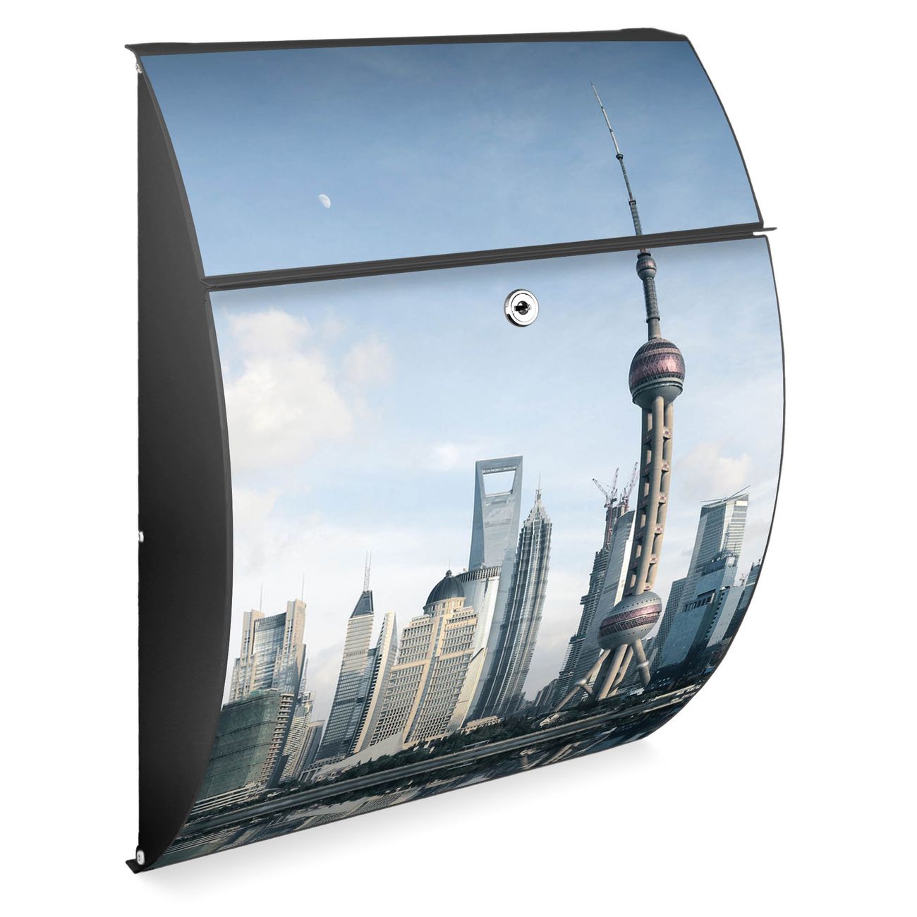 FUNKTION: DESIGN: Das Modell Riviera mit Motiv Shanghai hat ein sehr ansprechendes und zeitloses Design. Heben Sie Sich von der tristen grauen Masse ab, ohne auf Funktionalität zu verzichten. Der integrierte Öffnungsstopp ermöglicht eine einfache Handhabung beim Entnehmen der Post. DETAILS: Der Postkasten besteht aus vollflächig verzinktem Stahl welcher in Anthrazit lackiert wurde. Das Motiv besteht aus einer wetter- und UV-festen Folie, die mit einem Schutzlaminat überzogen ist, durch die Ihren Briefkasten zusätzlich vor Kratzern geschützt ist. Sie erhalten 2 Schlüssel sowie das passende Montagematerial. NUTZEN: Sie können den Briefkasten sowohl als Wandbriefkasten montieren oder einen passenden Ständer kaufen und als Standbriefkasten einbetonieren. Die Größe bietet genügend Platz für Sendungen aller Art, der Einwurf fasst auch größere A4 Sendungen. BANJADO: Ihr Briefkasten wird in Sachsen in einer kleinen Manufaktur von Hand veredelt. Die Motivfolie ist lösungsmittelfrei und schutzlaminiert, dies sorgt für einen langen Halt. Wir legen großen Wert auf die Verbindung von Funktionalität und Design. Sie erhalten Handarbeit aus Sachsen.