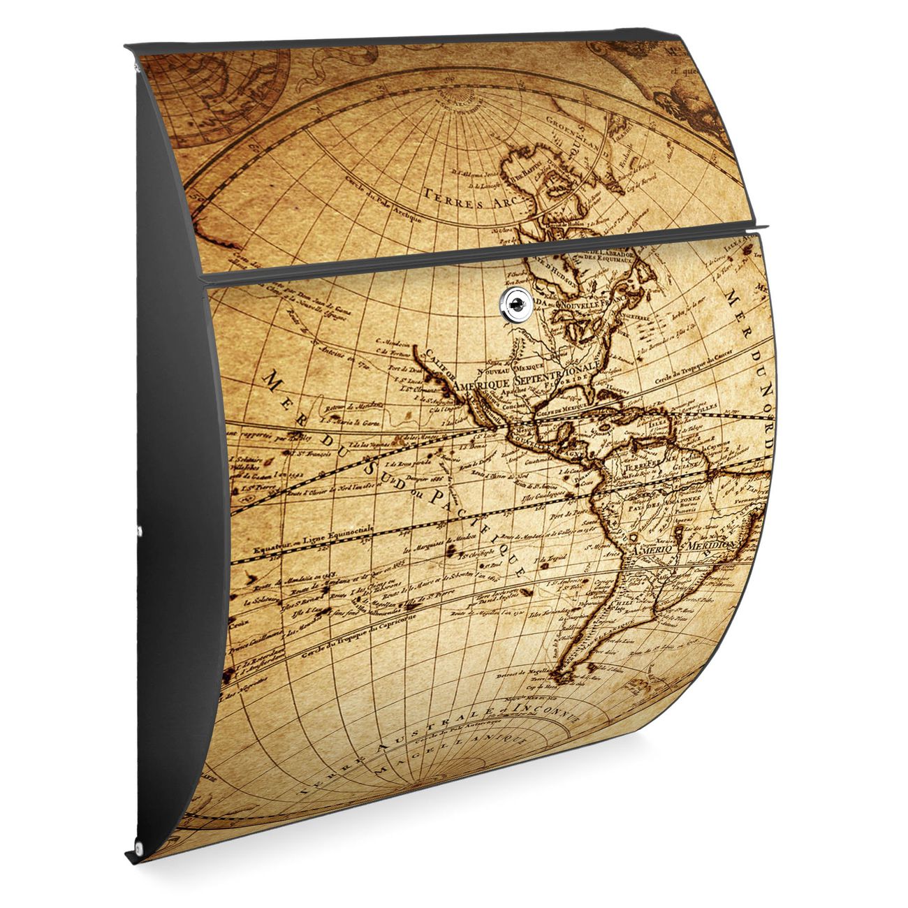 FUNKTION: DESIGN: Das Modell Riviera mit Motiv Sieben Weltmeere hat ein sehr ansprechendes und zeitloses Design. Heben Sie Sich von der tristen grauen Masse ab, ohne auf Funktionalität zu verzichten. Der integrierte Öffnungsstopp ermöglicht eine einfache Handhabung beim Entnehmen der Post. DETAILS: Der Postkasten besteht aus vollflächig verzinktem Stahl welcher in Anthrazit lackiert wurde. Das Motiv besteht aus einer wetter- und UV-festen Folie, die mit einem Schutzlaminat überzogen ist, durch die Ihren Briefkasten zusätzlich vor Kratzern geschützt ist. Sie erhalten 2 Schlüssel sowie das passende Montagematerial. NUTZEN: Sie können den Briefkasten sowohl als Wandbriefkasten montieren oder einen passenden Ständer kaufen und als Standbriefkasten einbetonieren. Die Größe bietet genügend Platz für Sendungen aller Art, der Einwurf fasst auch größere A4 Sendungen. BANJADO: Ihr Briefkasten wird in Sachsen in einer kleinen Manufaktur von Hand veredelt. Die Motivfolie ist lösungsmittelfrei und schutzlaminiert, dies sorgt für einen langen Halt. Wir legen großen Wert auf die Verbindung von Funktionalität und Design. Sie erhalten Handarbeit aus Sachsen.