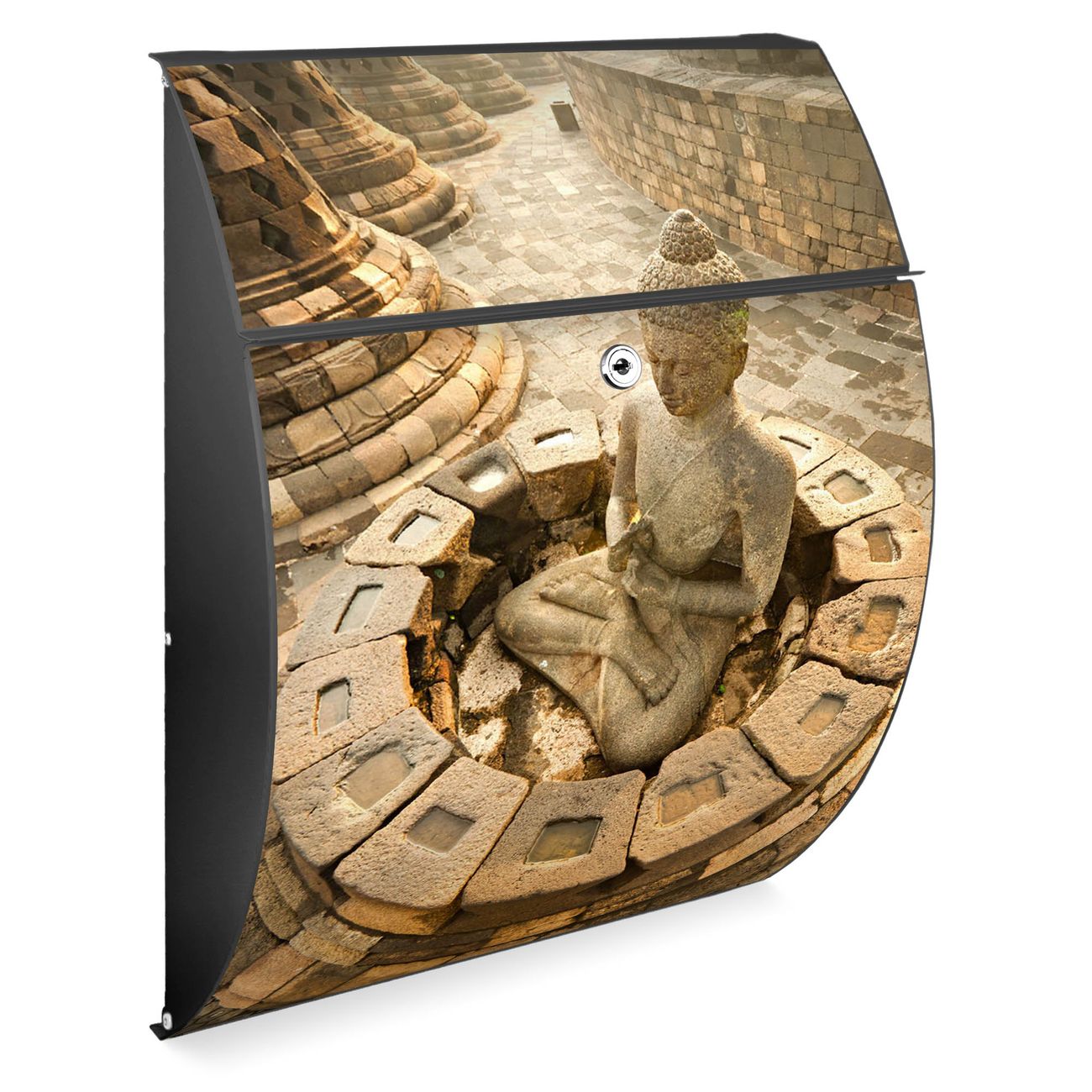 Der Burg Wächter Design Briefkasten mit Motiv Sitzender Buddha bietet Ihnen mit seinem Fassungsvermögen genügend Platz auch für große A4 Sendungen. Auf Wunsch können Sie bei uns den passenden Ständer kaufen und so aus dem Wandbriefkasten einen Standbriefkasten machen.