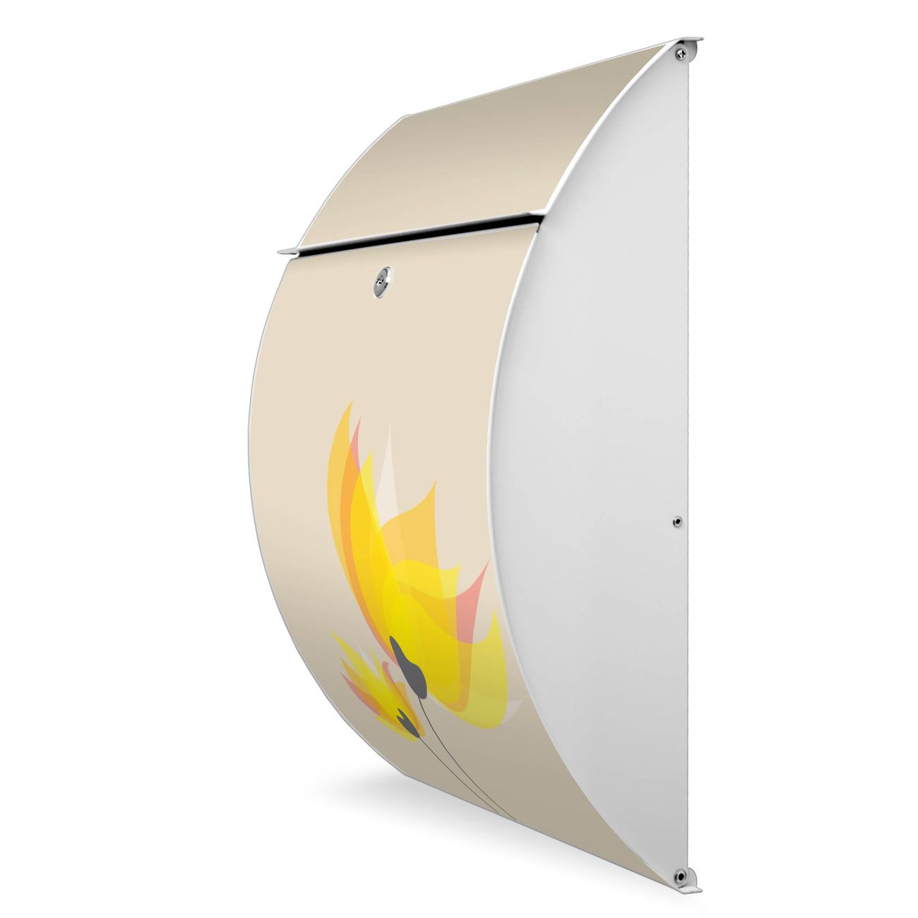 Der weiße Burg Wächter Design Briefkasten mit Motiv Sommerblüten bietet Ihnen mit seinem Fassungsvermögen genügend Platz auch für große A4 Sendungen. Auf Wunsch können Sie bei uns auch den passenden Ständer kaufen und so aus dem Wandbriefkasten einen Standbriefkasten machen.