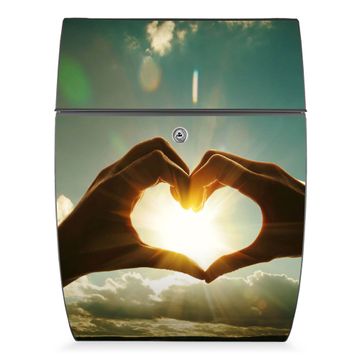 Der Burg Wächter Design Briefkasten mit Motiv Sonne im Herzen bietet Ihnen mit seinem Fassungsvermögen genügend Platz auch für große A4 Sendungen. Auf Wunsch können Sie bei uns den passenden Ständer kaufen und so aus dem Wandbriefkasten einen Standbriefkasten machen.