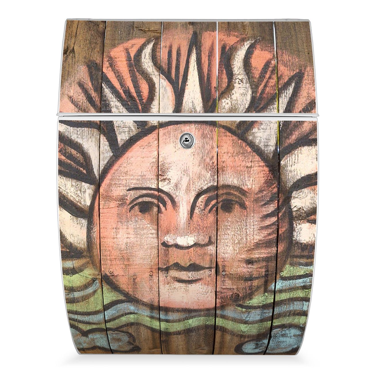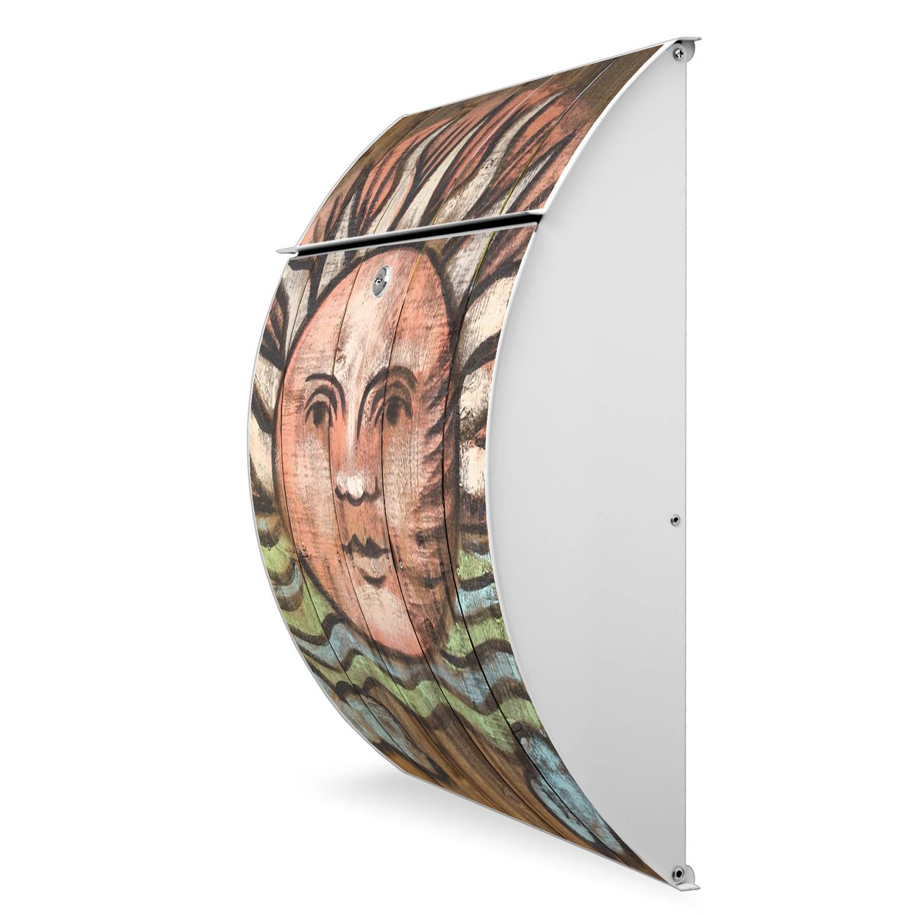 FUNKTION: DESIGN: Das Modell Riviera mit Motiv Sonne hat ein sehr ansprechendes und zeitloses Design. Heben Sie Sich von der tristen grauen Masse ab, ohne auf Funktionalität zu verzichten. Der integrierte Öffnungsstopp ermöglicht eine einfache Handhabung beim Entnehmen der Post. DETAILS: Der Postkasten besteht aus vollflächig verzinktem Stahl welcher in weiß lackiert wurde. Das Motiv besteht aus einer wetter- und UV-festen Folie, die mit einem Schutzlaminat überzogen ist, durch die Ihren Briefkasten zusätzlich vor Kratzern geschützt ist. Sie erhalten 2 Schlüssel sowie das passende Montagematerial. NUTZEN: Sie können den Briefkasten sowohl als Wandbriefkasten montieren oder einen passenden Ständer kaufen und als Standbriefkasten einbetonieren. Die Größe bietet genügend Platz für Sendungen aller Art, der Einwurf fasst auch größere A4 Sendungen. BANJADO: Ihr Briefkasten wird in Sachsen in einer kleinen Manufaktur von Hand veredelt. Die Motivfolie ist lösungsmittelfrei und schutzlaminiert, dies sorgt für einen langen Halt. Wir legen großen Wert auf die Verbindung von Funktionalität und Design. Sie erhalten Handarbeit aus Sachsen.