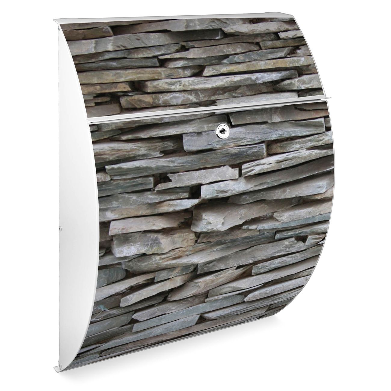 FUNKTION: DESIGN: Das Modell Riviera mit Motiv Steinwand hat ein sehr ansprechendes und zeitloses Design. Heben Sie Sich von der tristen grauen Masse ab, ohne auf Funktionalität zu verzichten. Der integrierte Öffnungsstopp ermöglicht eine einfache Handhabung beim Entnehmen der Post. DETAILS: Der Postkasten besteht aus vollflächig verzinktem Stahl welcher in weiß lackiert wurde. Das Motiv besteht aus einer wetter- und UV-festen Folie, die mit einem Schutzlaminat überzogen ist, durch die Ihren Briefkasten zusätzlich vor Kratzern geschützt ist. Sie erhalten 2 Schlüssel sowie das passende Montagematerial. NUTZEN: Sie können den Briefkasten sowohl als Wandbriefkasten montieren oder einen passenden Ständer kaufen und als Standbriefkasten einbetonieren. Die Größe bietet genügend Platz für Sendungen aller Art, der Einwurf fasst auch größere A4 Sendungen. BANJADO: Ihr Briefkasten wird in Sachsen in einer kleinen Manufaktur von Hand veredelt. Die Motivfolie ist lösungsmittelfrei und schutzlaminiert, dies sorgt für einen langen Halt. Wir legen großen Wert auf die Verbindung von Funktionalität und Design. Sie erhalten Handarbeit aus Sachsen.