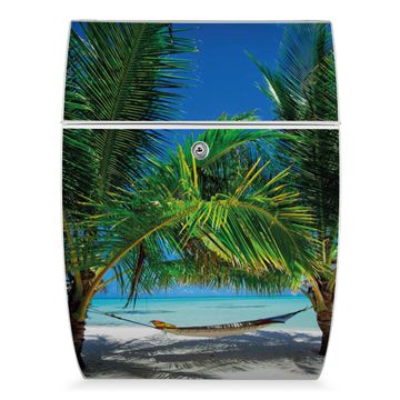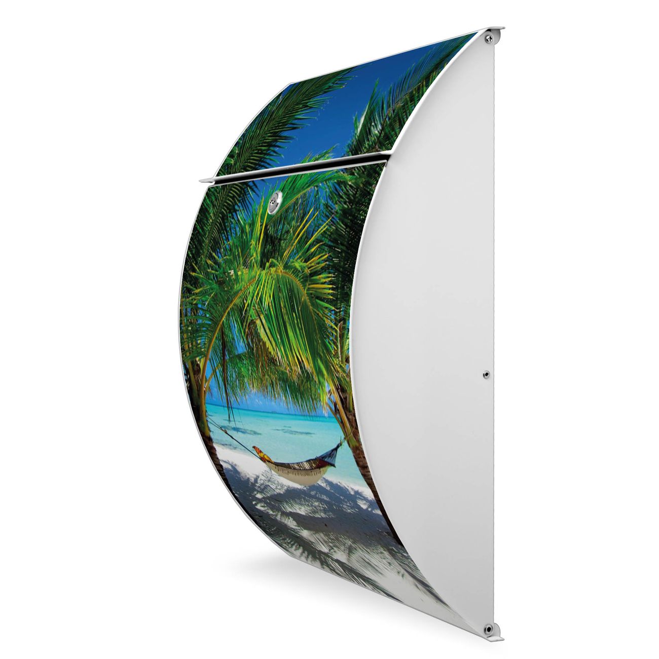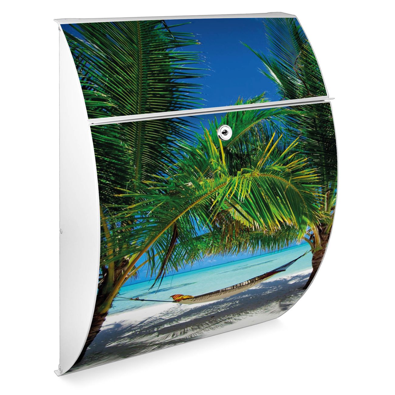 Der weiße Burg Wächter Design Briefkasten mit Motiv Strand bietet Ihnen mit seinem Fassungsvermögen genügend Platz auch für große A4 Sendungen. Auf Wunsch können Sie bei uns auch den passenden Ständer kaufen und so aus dem Wandbriefkasten einen Standbriefkasten machen.