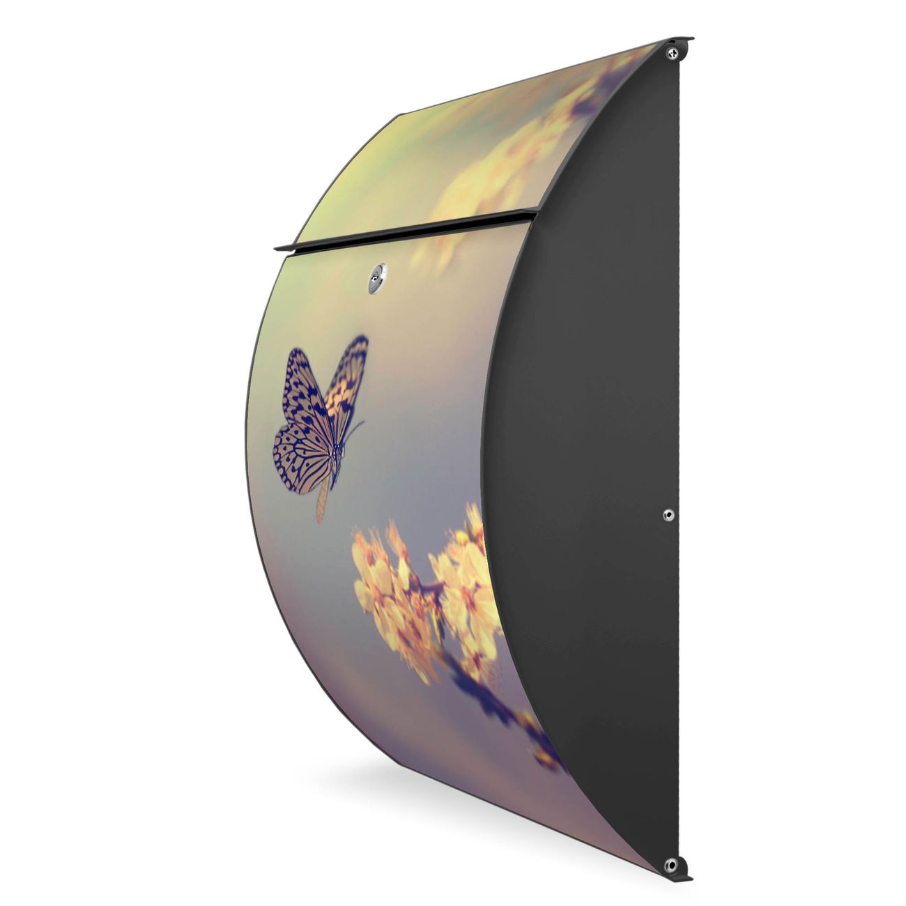 FUNKTION: DESIGN: Das Modell Riviera mit Motiv Tag Im Mai hat ein sehr ansprechendes und zeitloses Design. Heben Sie Sich von der tristen grauen Masse ab, ohne auf Funktionalität zu verzichten. Der integrierte Öffnungsstopp ermöglicht eine einfache Handhabung beim Entnehmen der Post. DETAILS: Der Postkasten besteht aus vollflächig verzinktem Stahl welcher in Anthrazit lackiert wurde. Das Motiv besteht aus einer wetter- und UV-festen Folie, die mit einem Schutzlaminat überzogen ist, durch die Ihren Briefkasten zusätzlich vor Kratzern geschützt ist. Sie erhalten 2 Schlüssel sowie das passende Montagematerial. NUTZEN: Sie können den Briefkasten sowohl als Wandbriefkasten montieren oder einen passenden Ständer kaufen und als Standbriefkasten einbetonieren. Die Größe bietet genügend Platz für Sendungen aller Art, der Einwurf fasst auch größere A4 Sendungen. BANJADO: Ihr Briefkasten wird in Sachsen in einer kleinen Manufaktur von Hand veredelt. Die Motivfolie ist lösungsmittelfrei und schutzlaminiert, dies sorgt für einen langen Halt. Wir legen großen Wert auf die Verbindung von Funktionalität und Design. Sie erhalten Handarbeit aus Sachsen.