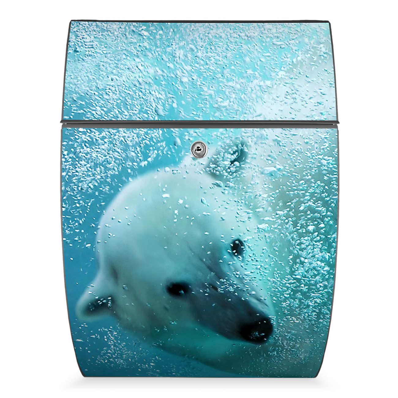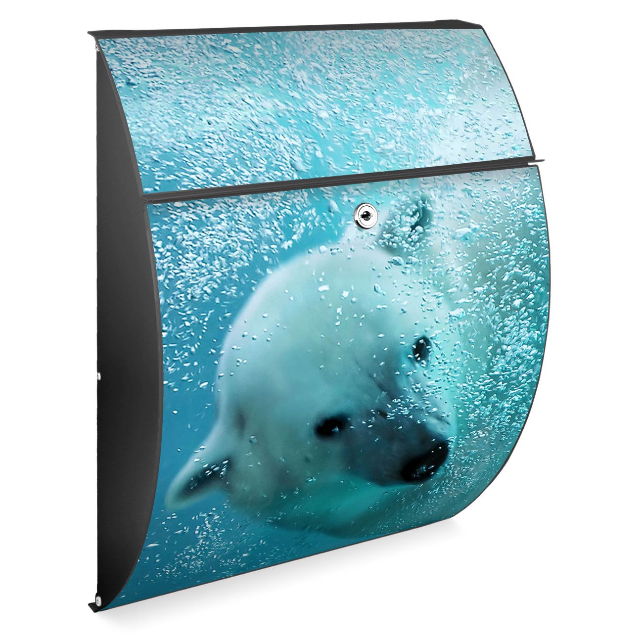 Der Burg Wächter Design Briefkasten mit Motiv Tauchender Eisbär bietet Ihnen mit seinem Fassungsvermögen genügend Platz auch für große A4 Sendungen. Auf Wunsch können Sie bei uns den passenden Ständer kaufen und so aus dem Wandbriefkasten einen Standbriefkasten machen.