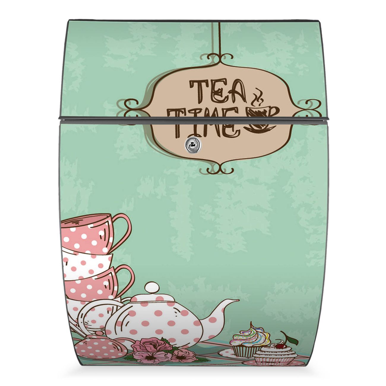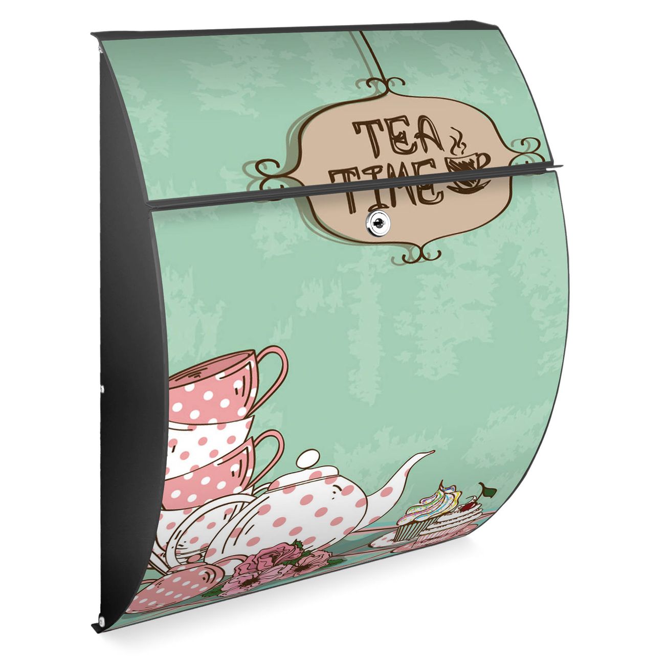 Der Burg Wächter Design Briefkasten mit Motiv Tea Time bietet Ihnen mit seinem Fassungsvermögen genügend Platz auch für große A4 Sendungen. Auf Wunsch können Sie bei uns den passenden Ständer kaufen und so aus dem Wandbriefkasten einen Standbriefkasten machen.