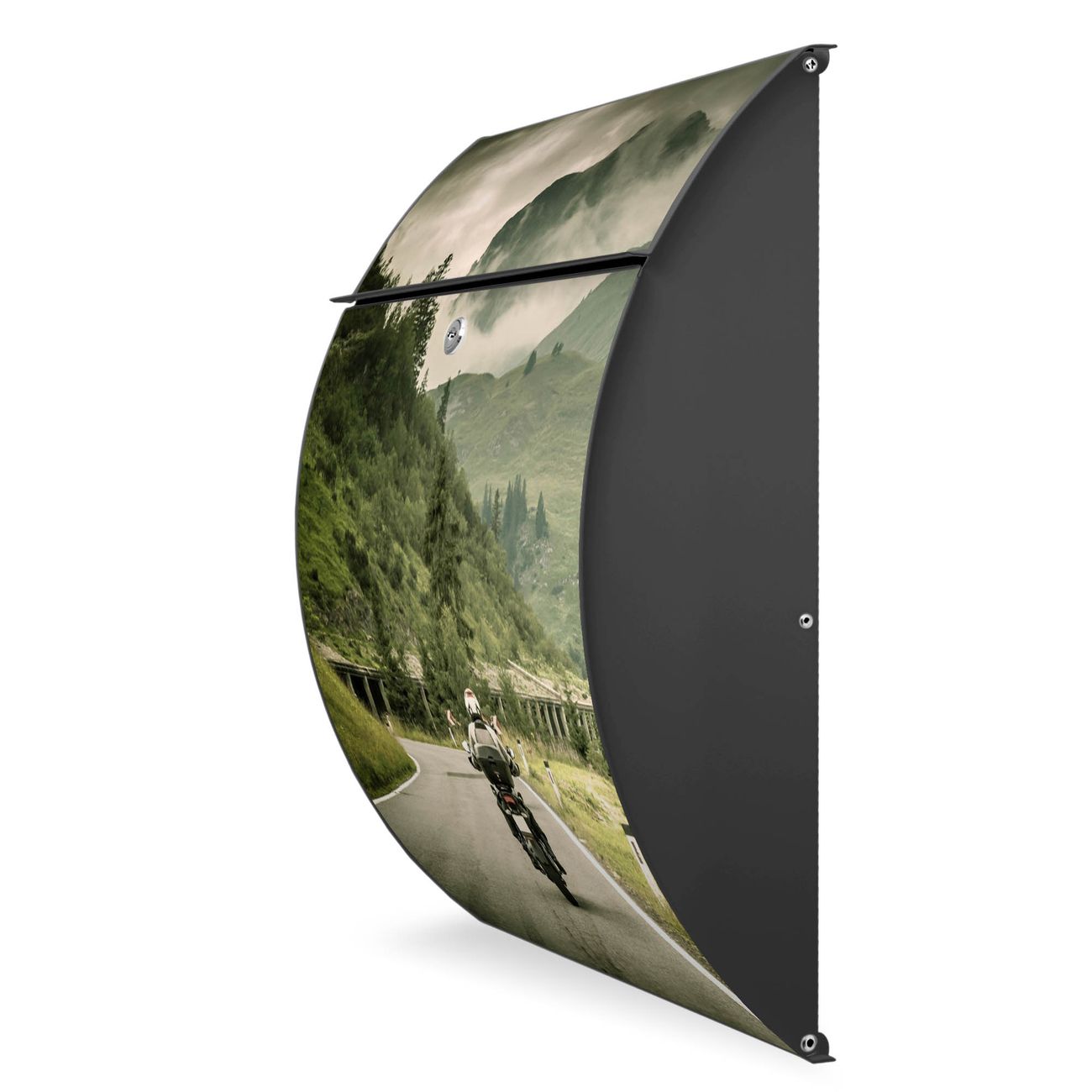 FUNKTION: DESIGN: Das Modell Riviera mit Motiv Transalp hat ein sehr ansprechendes und zeitloses Design. Heben Sie Sich von der tristen grauen Masse ab, ohne auf Funktionalität zu verzichten. Der integrierte Öffnungsstopp ermöglicht eine einfache Handhabung beim Entnehmen der Post. DETAILS: Der Postkasten besteht aus vollflächig verzinktem Stahl welcher in Anthrazit lackiert wurde. Das Motiv besteht aus einer wetter- und UV-festen Folie, die mit einem Schutzlaminat überzogen ist, durch die Ihren Briefkasten zusätzlich vor Kratzern geschützt ist. Sie erhalten 2 Schlüssel sowie das passende Montagematerial. NUTZEN: Sie können den Briefkasten sowohl als Wandbriefkasten montieren oder einen passenden Ständer kaufen und als Standbriefkasten einbetonieren. Die Größe bietet genügend Platz für Sendungen aller Art, der Einwurf fasst auch größere A4 Sendungen. BANJADO: Ihr Briefkasten wird in Sachsen in einer kleinen Manufaktur von Hand veredelt. Die Motivfolie ist lösungsmittelfrei und schutzlaminiert, dies sorgt für einen langen Halt. Wir legen großen Wert auf die Verbindung von Funktionalität und Design. Sie erhalten Handarbeit aus Sachsen.