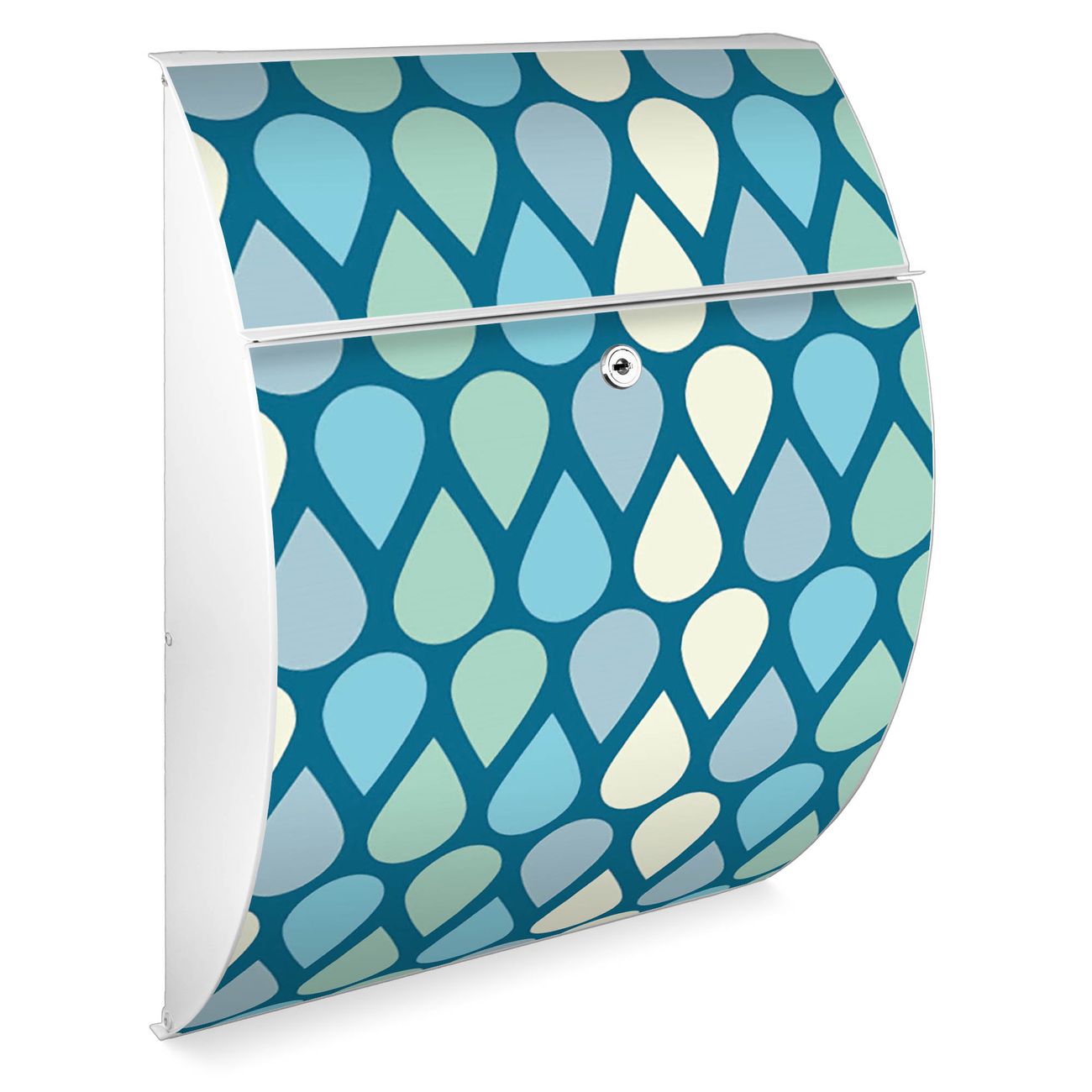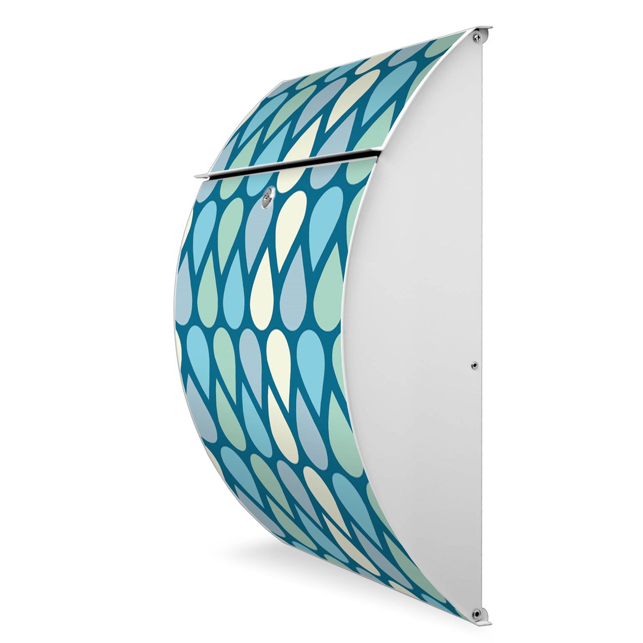 FUNKTION: DESIGN: Das Modell Riviera mit Motiv Tropfen hat ein sehr ansprechendes und zeitloses Design. Heben Sie Sich von der tristen grauen Masse ab, ohne auf Funktionalität zu verzichten. Der integrierte Öffnungsstopp ermöglicht eine einfache Handhabung beim Entnehmen der Post. DETAILS: Der Postkasten besteht aus vollflächig verzinktem Stahl welcher in weiß lackiert wurde. Das Motiv besteht aus einer wetter- und UV-festen Folie, die mit einem Schutzlaminat überzogen ist, durch die Ihren Briefkasten zusätzlich vor Kratzern geschützt ist. Sie erhalten 2 Schlüssel sowie das passende Montagematerial. NUTZEN: Sie können den Briefkasten sowohl als Wandbriefkasten montieren oder einen passenden Ständer kaufen und als Standbriefkasten einbetonieren. Die Größe bietet genügend Platz für Sendungen aller Art, der Einwurf fasst auch größere A4 Sendungen. BANJADO: Ihr Briefkasten wird in Sachsen in einer kleinen Manufaktur von Hand veredelt. Die Motivfolie ist lösungsmittelfrei und schutzlaminiert, dies sorgt für einen langen Halt. Wir legen großen Wert auf die Verbindung von Funktionalität und Design. Sie erhalten Handarbeit aus Sachsen.