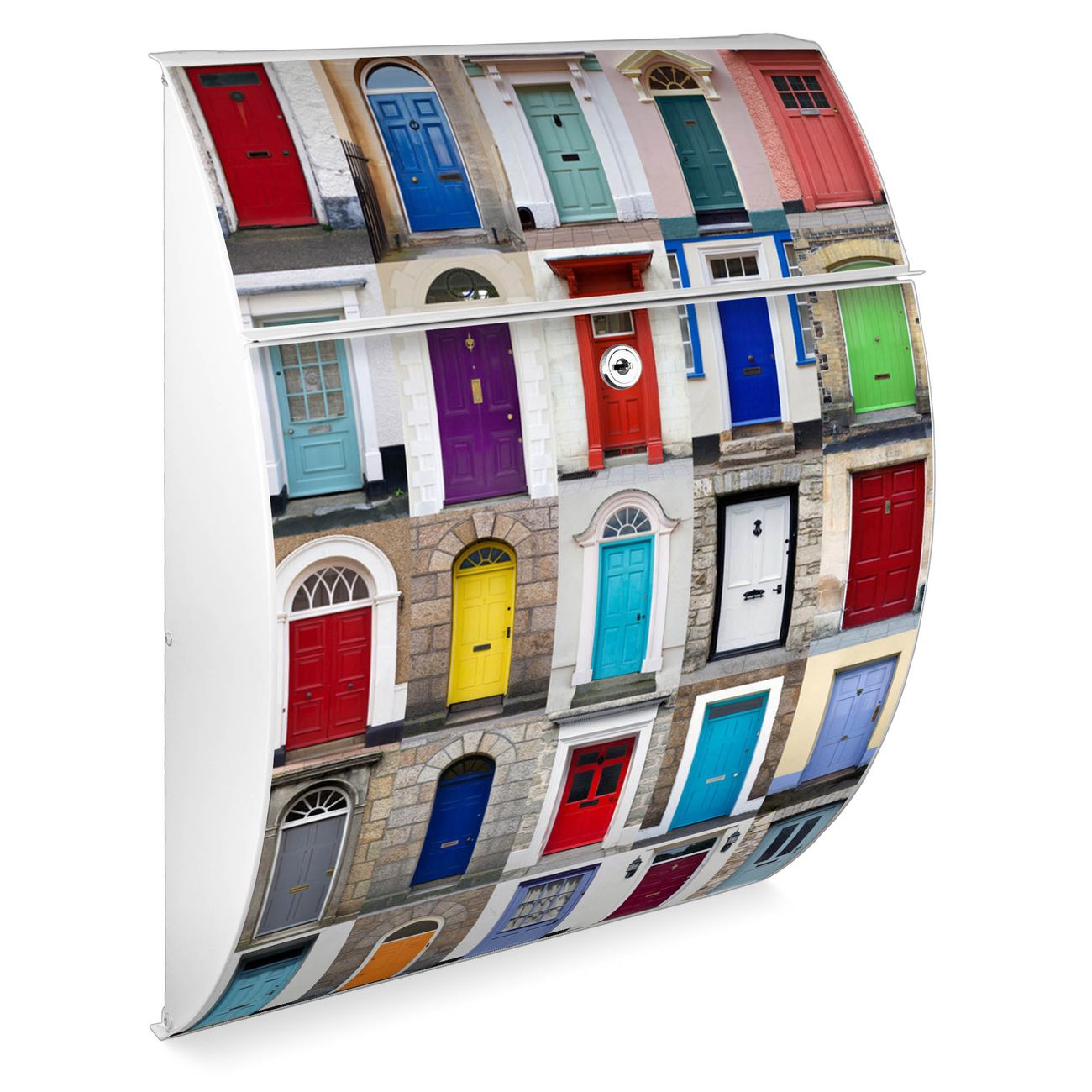 FUNKTION: DESIGN: Das Modell Riviera mit Motiv Türen hat ein sehr ansprechendes und zeitloses Design. Heben Sie Sich von der tristen grauen Masse ab, ohne auf Funktionalität zu verzichten. Der integrierte Öffnungsstopp ermöglicht eine einfache Handhabung beim Entnehmen der Post. DETAILS: Der Postkasten besteht aus vollflächig verzinktem Stahl welcher in weiß lackiert wurde. Das Motiv besteht aus einer wetter- und UV-festen Folie, die mit einem Schutzlaminat überzogen ist, durch die Ihren Briefkasten zusätzlich vor Kratzern geschützt ist. Sie erhalten 2 Schlüssel sowie das passende Montagematerial. NUTZEN: Sie können den Briefkasten sowohl als Wandbriefkasten montieren oder einen passenden Ständer kaufen und als Standbriefkasten einbetonieren. Die Größe bietet genügend Platz für Sendungen aller Art, der Einwurf fasst auch größere A4 Sendungen. BANJADO: Ihr Briefkasten wird in Sachsen in einer kleinen Manufaktur von Hand veredelt. Die Motivfolie ist lösungsmittelfrei und schutzlaminiert, dies sorgt für einen langen Halt. Wir legen großen Wert auf die Verbindung von Funktionalität und Design. Sie erhalten Handarbeit aus Sachsen.