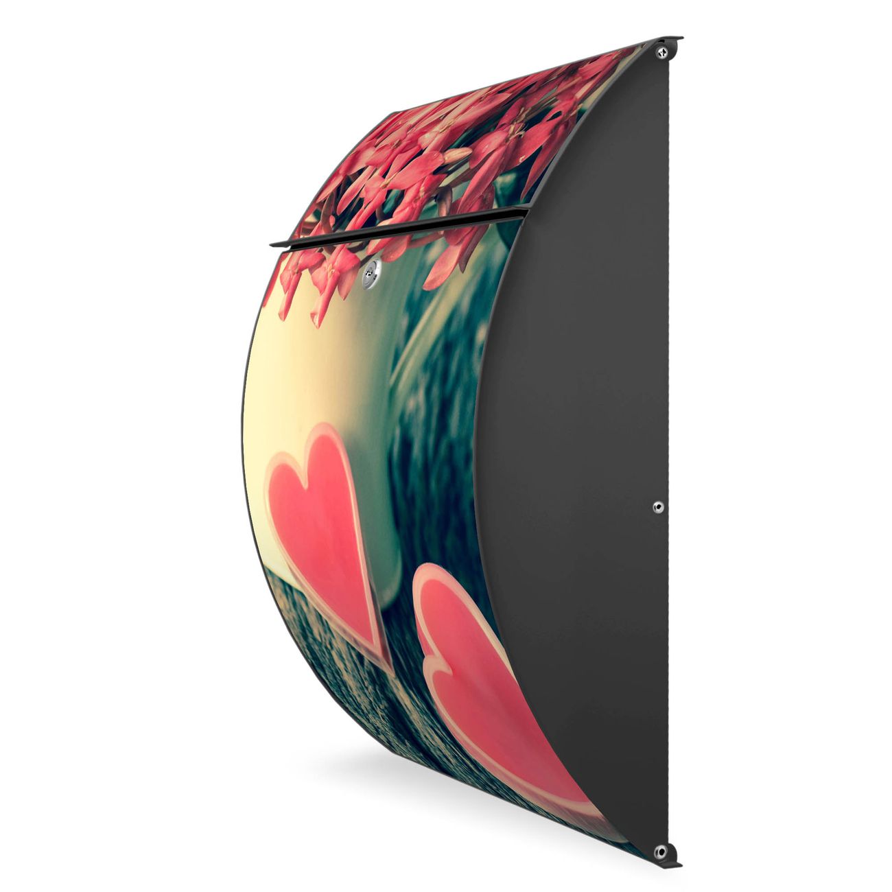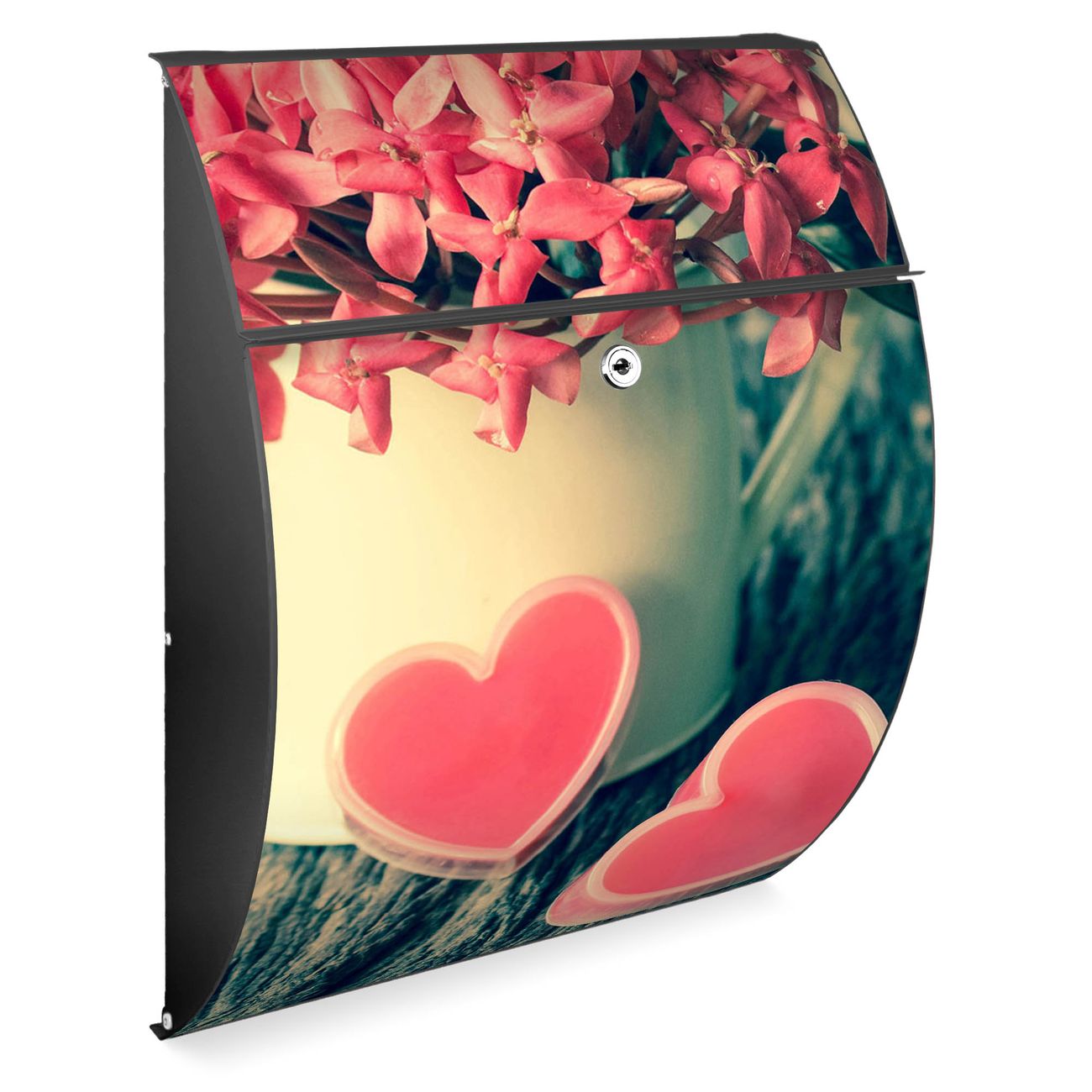 Der Burg Wächter Design Briefkasten mit Motiv Valentin bietet Ihnen mit seinem Fassungsvermögen genügend Platz auch für große A4 Sendungen. Auf Wunsch können Sie bei uns den passenden Ständer kaufen und so aus dem Wandbriefkasten einen Standbriefkasten machen.