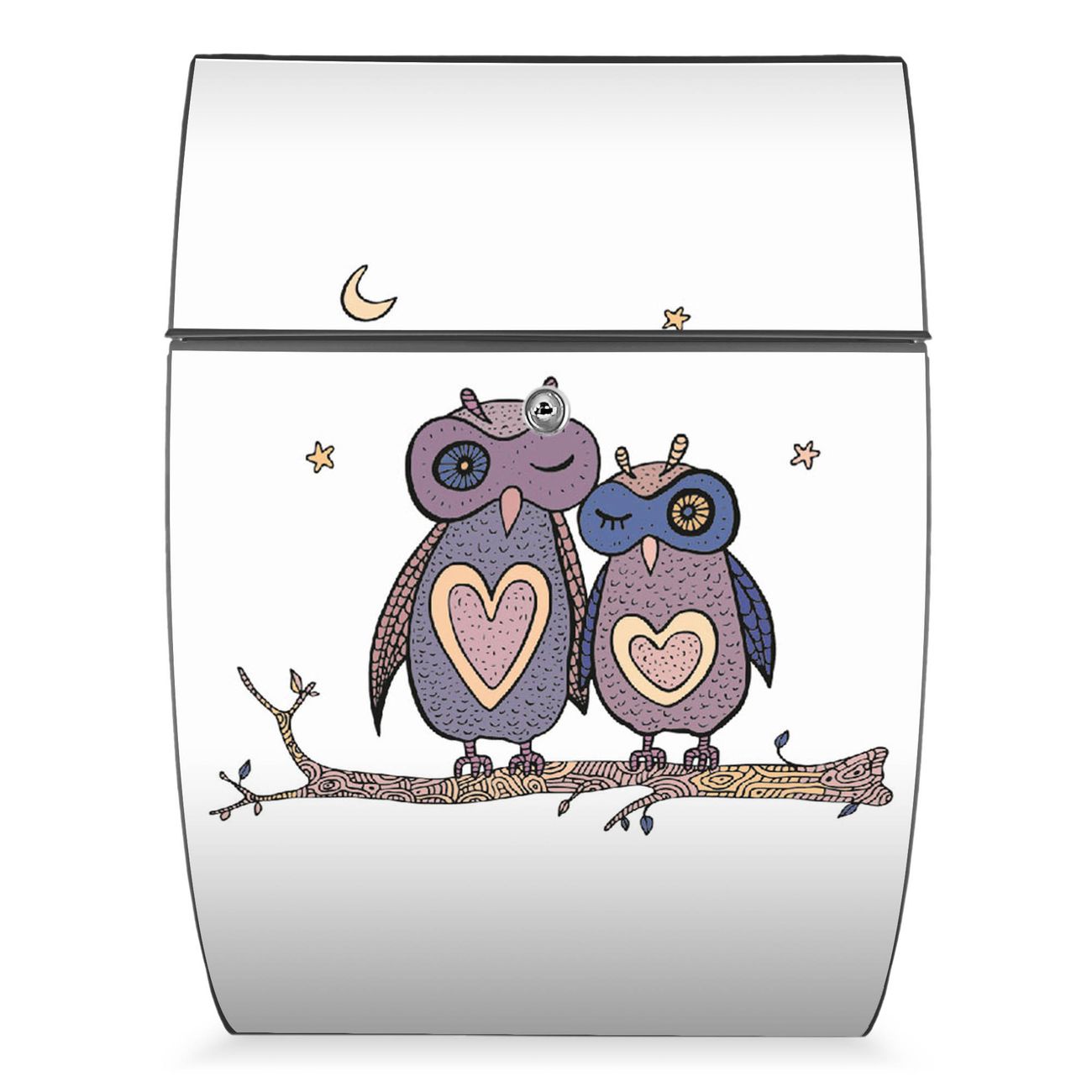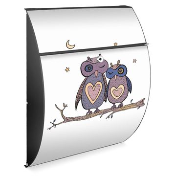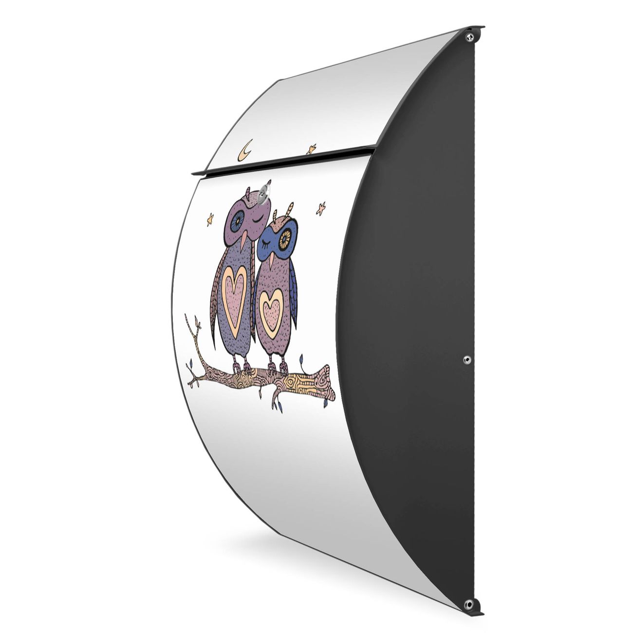 Der Burg Wächter Design Briefkasten mit Motiv Verliebte Eulen bietet Ihnen mit seinem Fassungsvermögen genügend Platz auch für große A4 Sendungen. Auf Wunsch können Sie bei uns den passenden Ständer kaufen und so aus dem Wandbriefkasten einen Standbriefkasten machen.