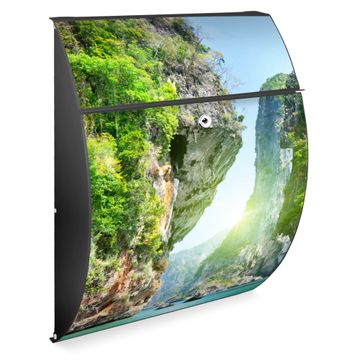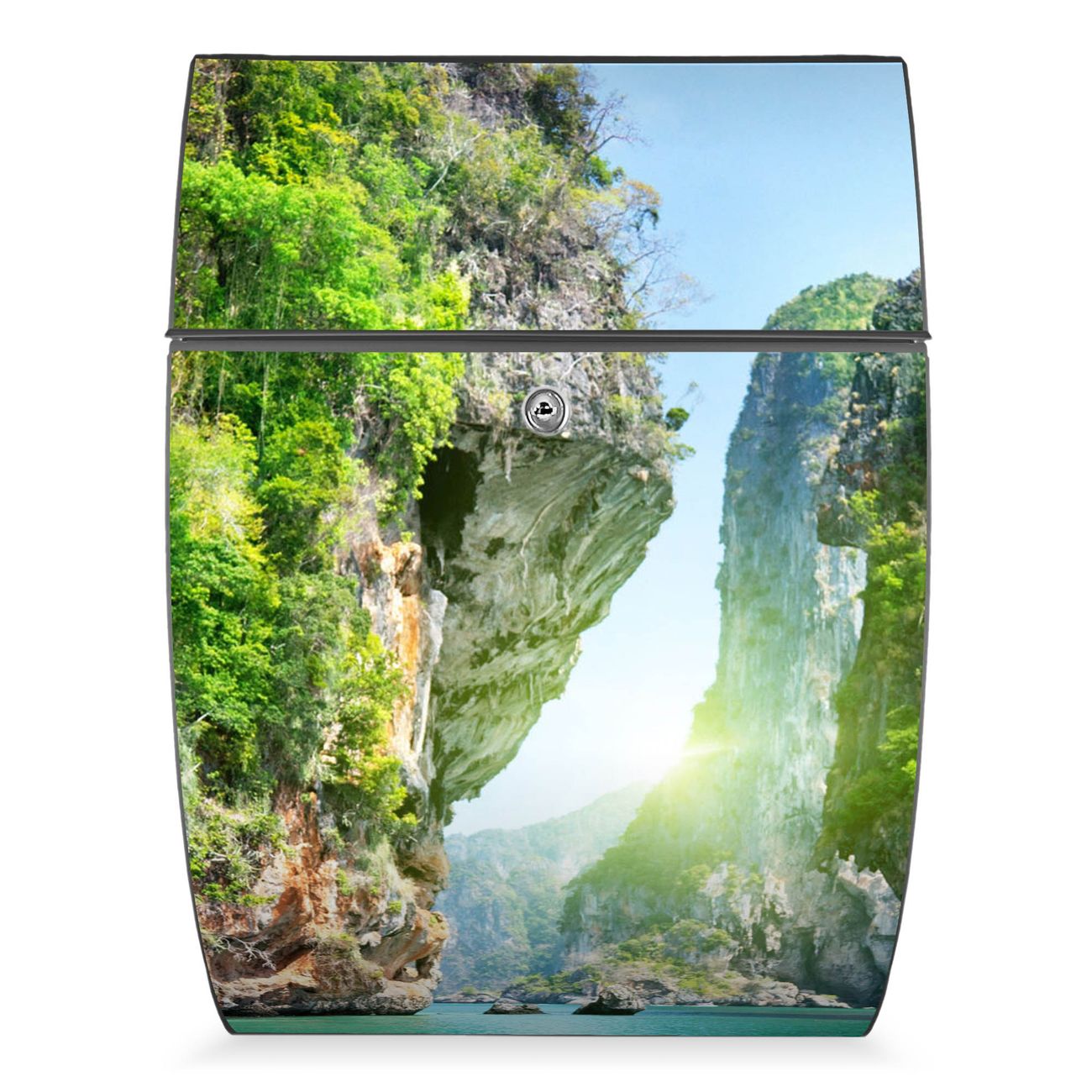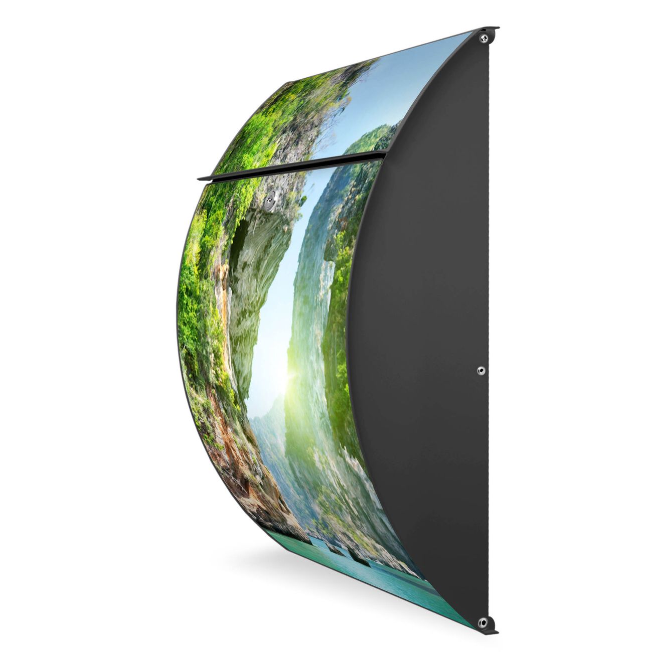 Der Burg Wächter Design Briefkasten mit Motiv Versteckte Bucht bietet Ihnen mit seinem Fassungsvermögen genügend Platz auch für große A4 Sendungen. Auf Wunsch können Sie bei uns den passenden Ständer kaufen und so aus dem Wandbriefkasten einen Standbriefkasten machen.