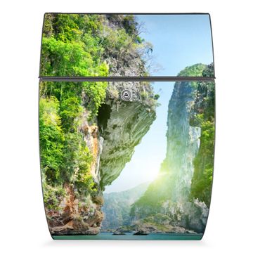 FUNKTION: DESIGN: Das Modell Riviera mit Motiv Versteckte Bucht hat ein sehr ansprechendes und zeitloses Design. Heben Sie Sich von der tristen grauen Masse ab, ohne auf Funktionalität zu verzichten. Der integrierte Öffnungsstopp ermöglicht eine einfache Handhabung beim Entnehmen der Post. DETAILS: Der Postkasten besteht aus vollflächig verzinktem Stahl welcher in Anthrazit lackiert wurde. Das Motiv besteht aus einer wetter- und UV-festen Folie, die mit einem Schutzlaminat überzogen ist, durch die Ihren Briefkasten zusätzlich vor Kratzern geschützt ist. Sie erhalten 2 Schlüssel sowie das passende Montagematerial. NUTZEN: Sie können den Briefkasten sowohl als Wandbriefkasten montieren oder einen passenden Ständer kaufen und als Standbriefkasten einbetonieren. Die Größe bietet genügend Platz für Sendungen aller Art, der Einwurf fasst auch größere A4 Sendungen. BANJADO: Ihr Briefkasten wird in Sachsen in einer kleinen Manufaktur von Hand veredelt. Die Motivfolie ist lösungsmittelfrei und schutzlaminiert, dies sorgt für einen langen Halt. Wir legen großen Wert auf die Verbindung von Funktionalität und Design. Sie erhalten Handarbeit aus Sachsen.