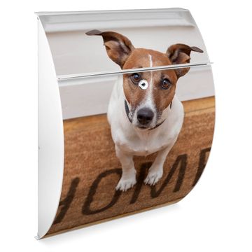 Der weiße Burg Wächter Design Briefkasten mit Motiv Wachhund Jack Russel bietet Ihnen mit seinem Fassungsvermögen genügend Platz auch für große A4 Sendungen. Auf Wunsch können Sie bei uns auch den passenden Ständer kaufen und so aus dem Wandbriefkasten einen Standbriefkasten machen.