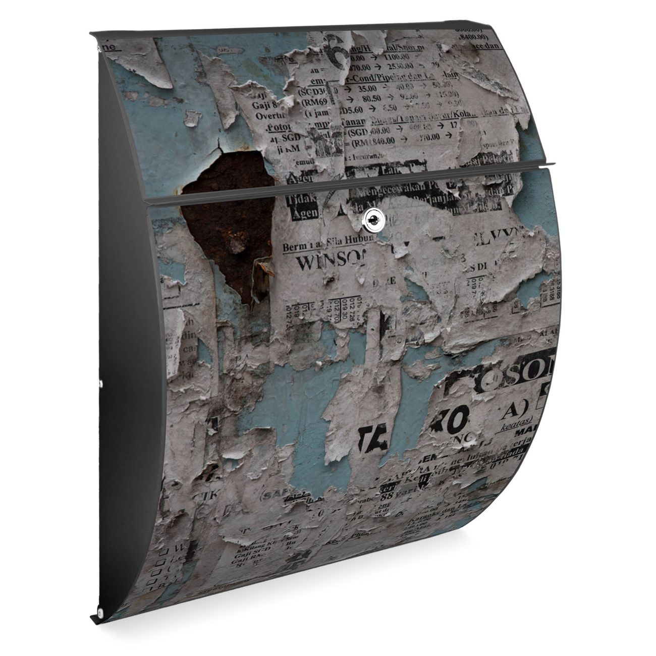 FUNKTION: DESIGN: Das Modell Riviera mit Motiv Wand mit Zeitungen hat ein sehr ansprechendes und zeitloses Design. Heben Sie Sich von der tristen grauen Masse ab, ohne auf Funktionalität zu verzichten. Der integrierte Öffnungsstopp ermöglicht eine einfache Handhabung beim Entnehmen der Post. DETAILS: Der Postkasten besteht aus vollflächig verzinktem Stahl welcher in Anthrazit lackiert wurde. Das Motiv besteht aus einer wetter- und UV-festen Folie, die mit einem Schutzlaminat überzogen ist, durch die Ihren Briefkasten zusätzlich vor Kratzern geschützt ist. Sie erhalten 2 Schlüssel sowie das passende Montagematerial. NUTZEN: Sie können den Briefkasten sowohl als Wandbriefkasten montieren oder einen passenden Ständer kaufen und als Standbriefkasten einbetonieren. Die Größe bietet genügend Platz für Sendungen aller Art, der Einwurf fasst auch größere A4 Sendungen. BANJADO: Ihr Briefkasten wird in Sachsen in einer kleinen Manufaktur von Hand veredelt. Die Motivfolie ist lösungsmittelfrei und schutzlaminiert, dies sorgt für einen langen Halt. Wir legen großen Wert auf die Verbindung von Funktionalität und Design. Sie erhalten Handarbeit aus Sachsen.