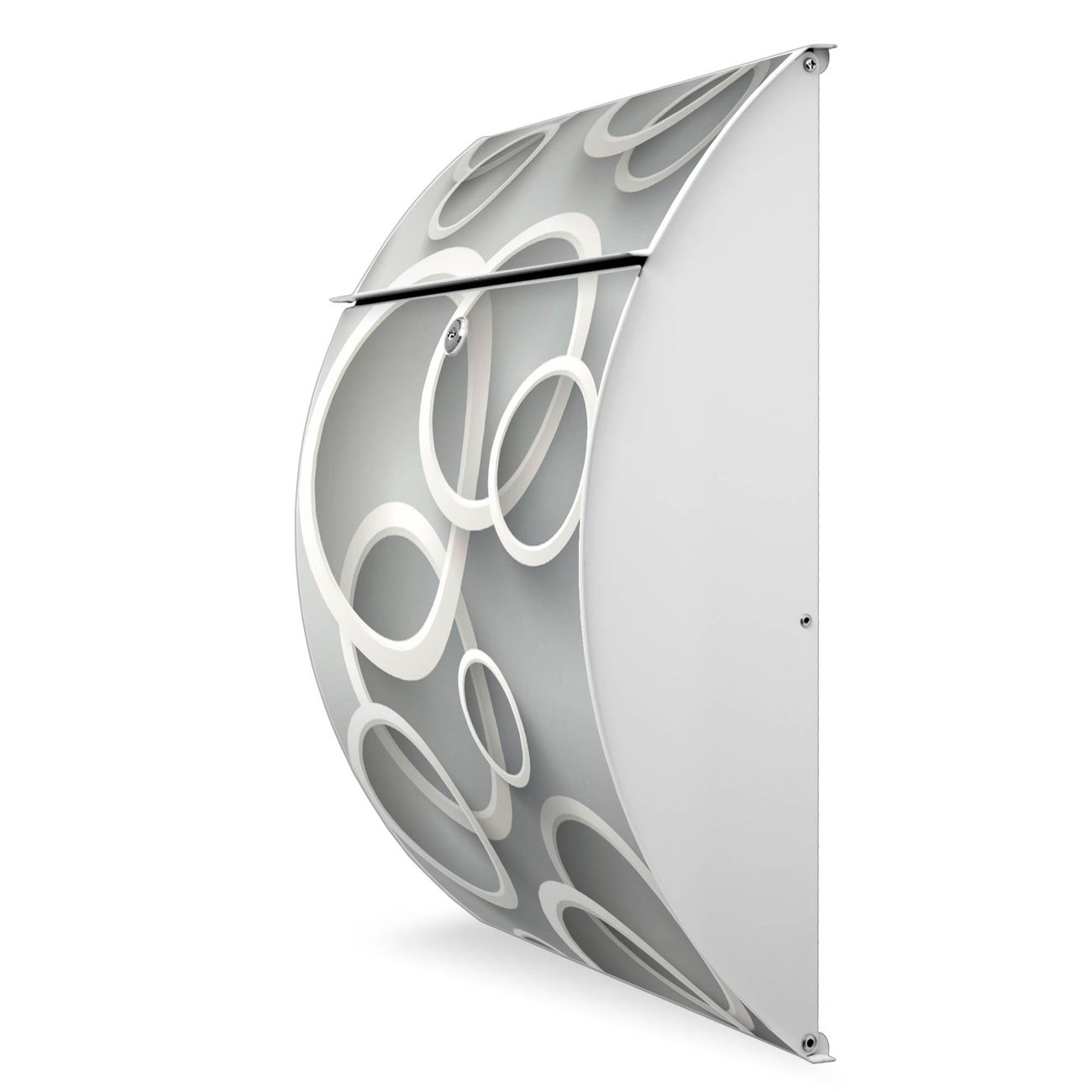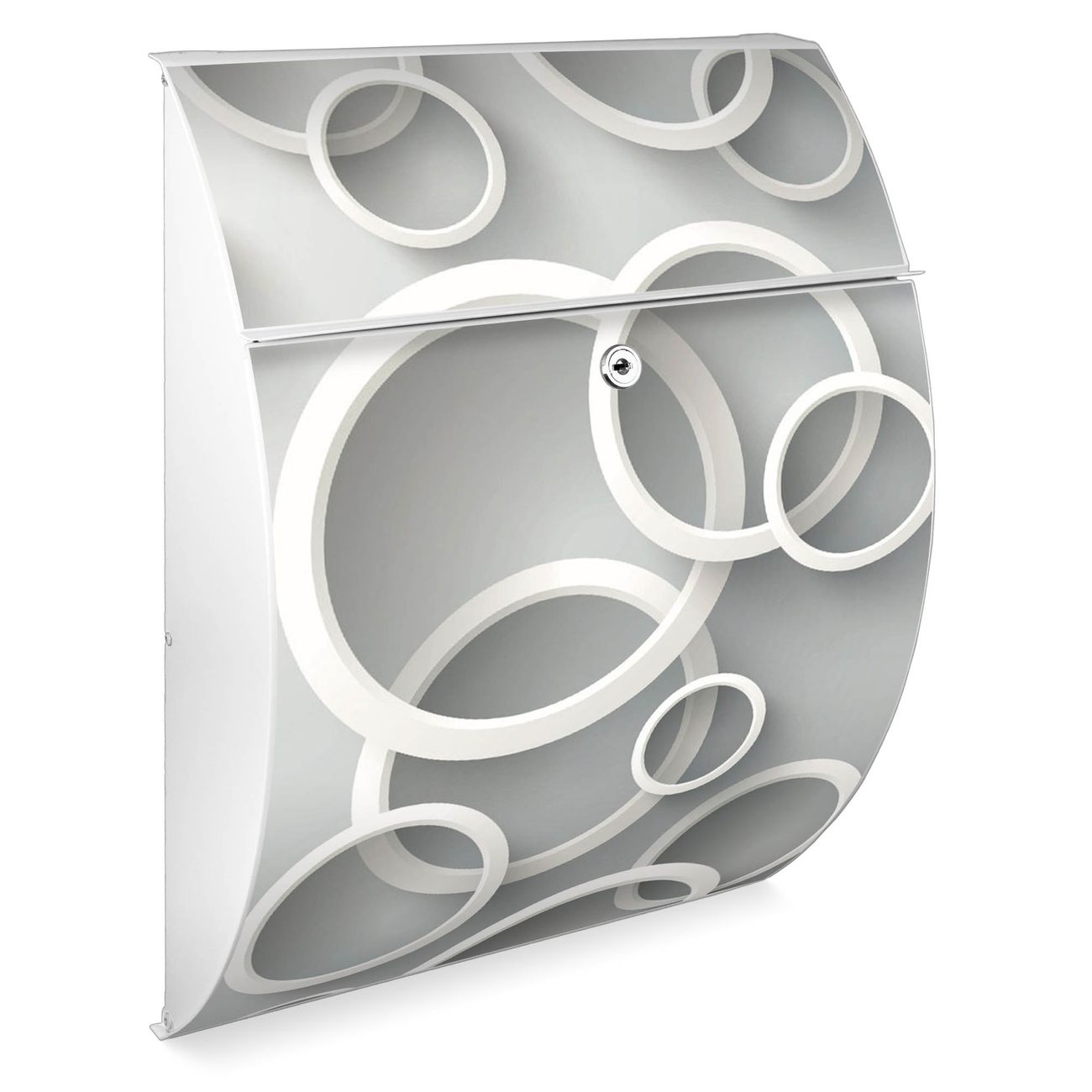 Der weiße Burg Wächter Design Briefkasten mit Motiv Weiße Ringe bietet Ihnen mit seinem Fassungsvermögen genügend Platz auch für große A4 Sendungen. Auf Wunsch können Sie bei uns auch den passenden Ständer kaufen und so aus dem Wandbriefkasten einen Standbriefkasten machen.