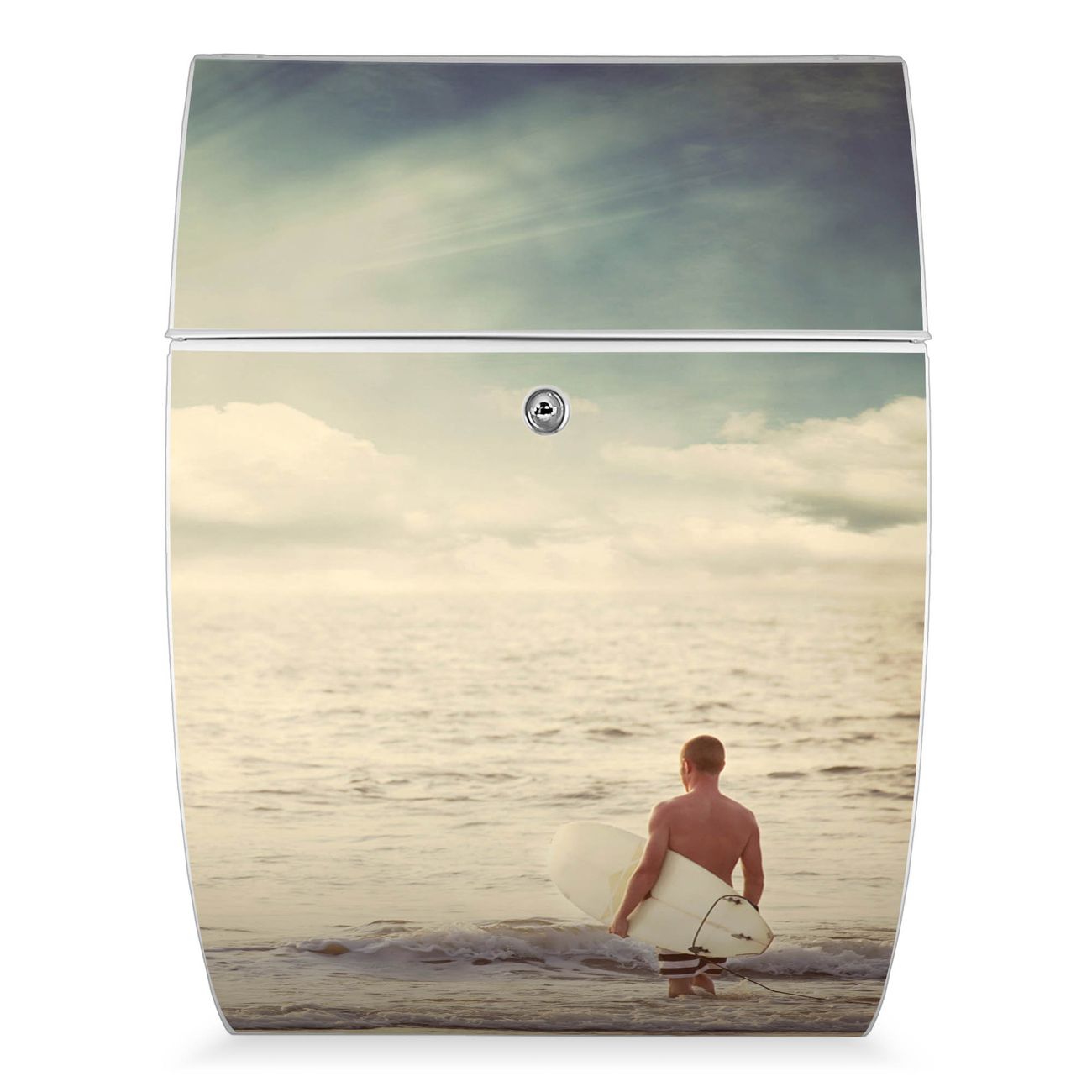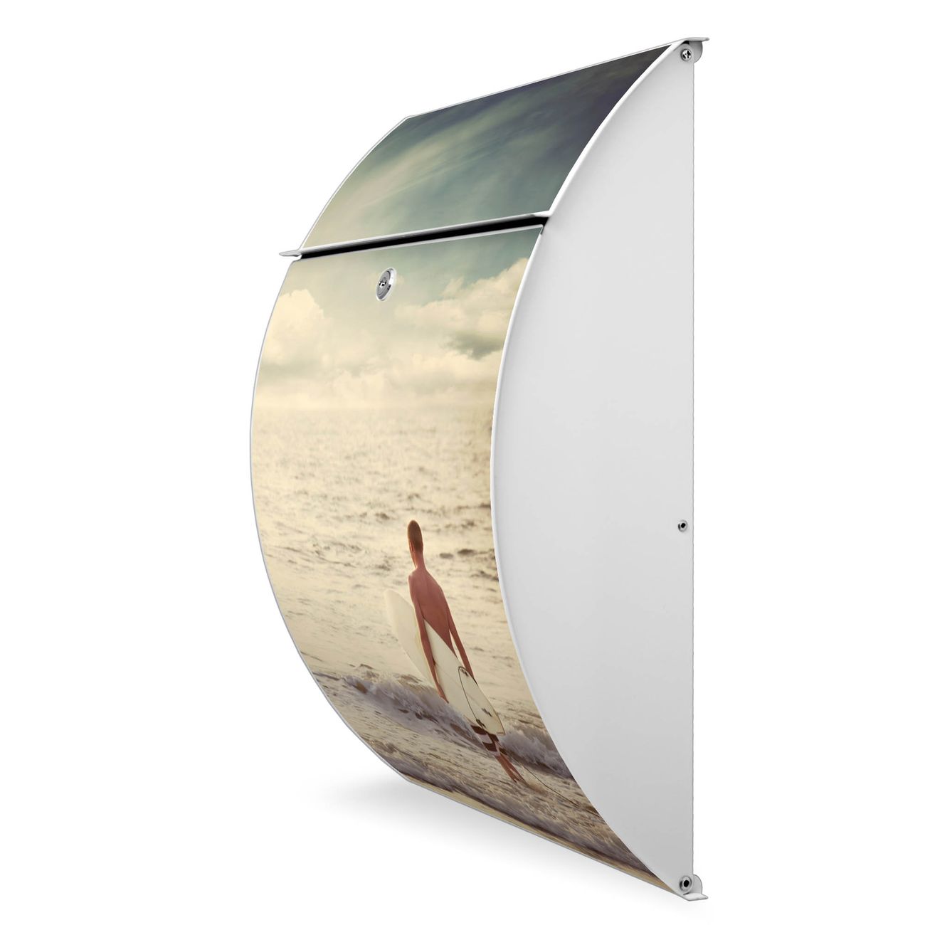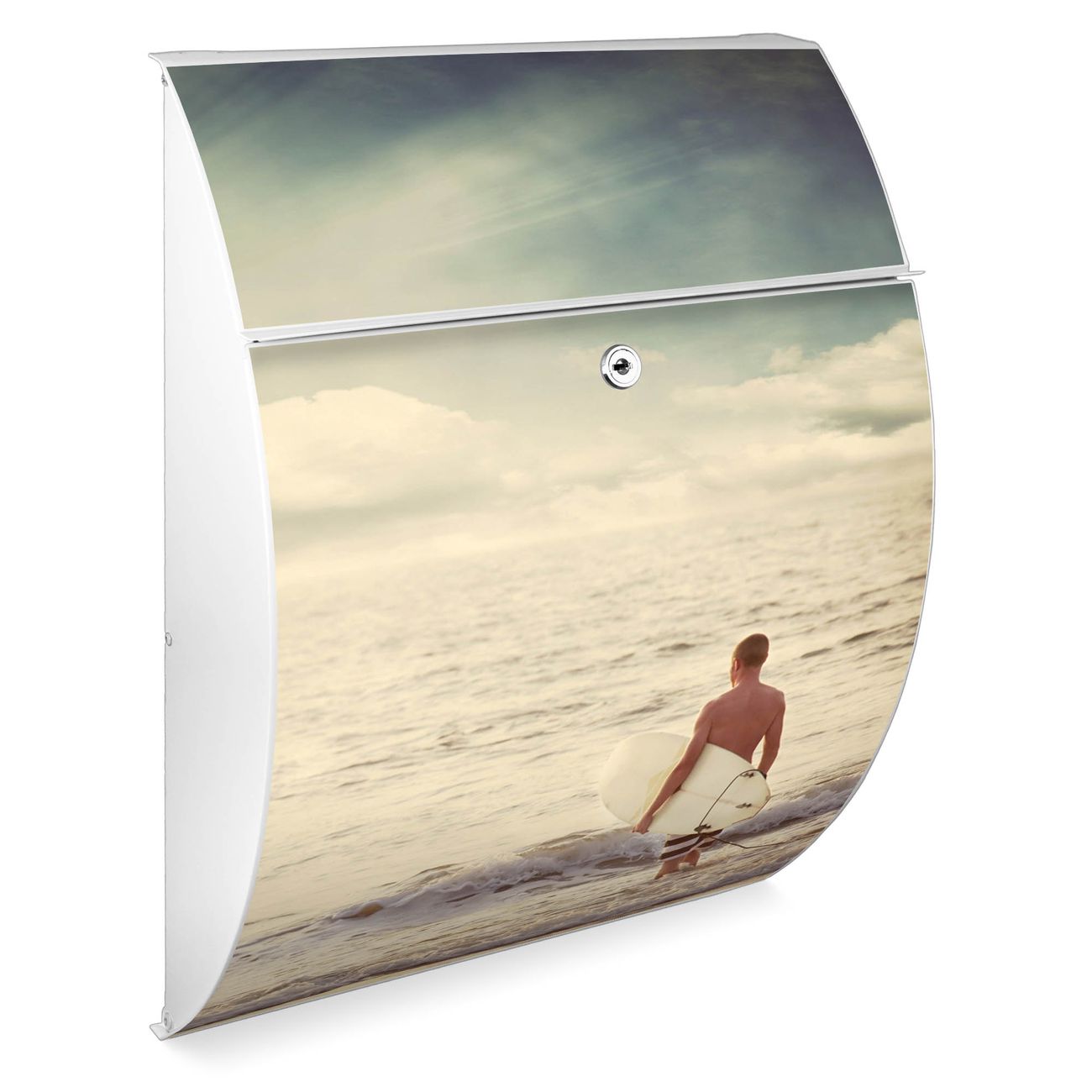 Der weiße Burg Wächter Design Briefkasten mit Motiv Wellenreiten Gehen 2 bietet Ihnen mit seinem Fassungsvermögen genügend Platz auch für große A4 Sendungen. Auf Wunsch können Sie bei uns auch den passenden Ständer kaufen und so aus dem Wandbriefkasten einen Standbriefkasten machen.