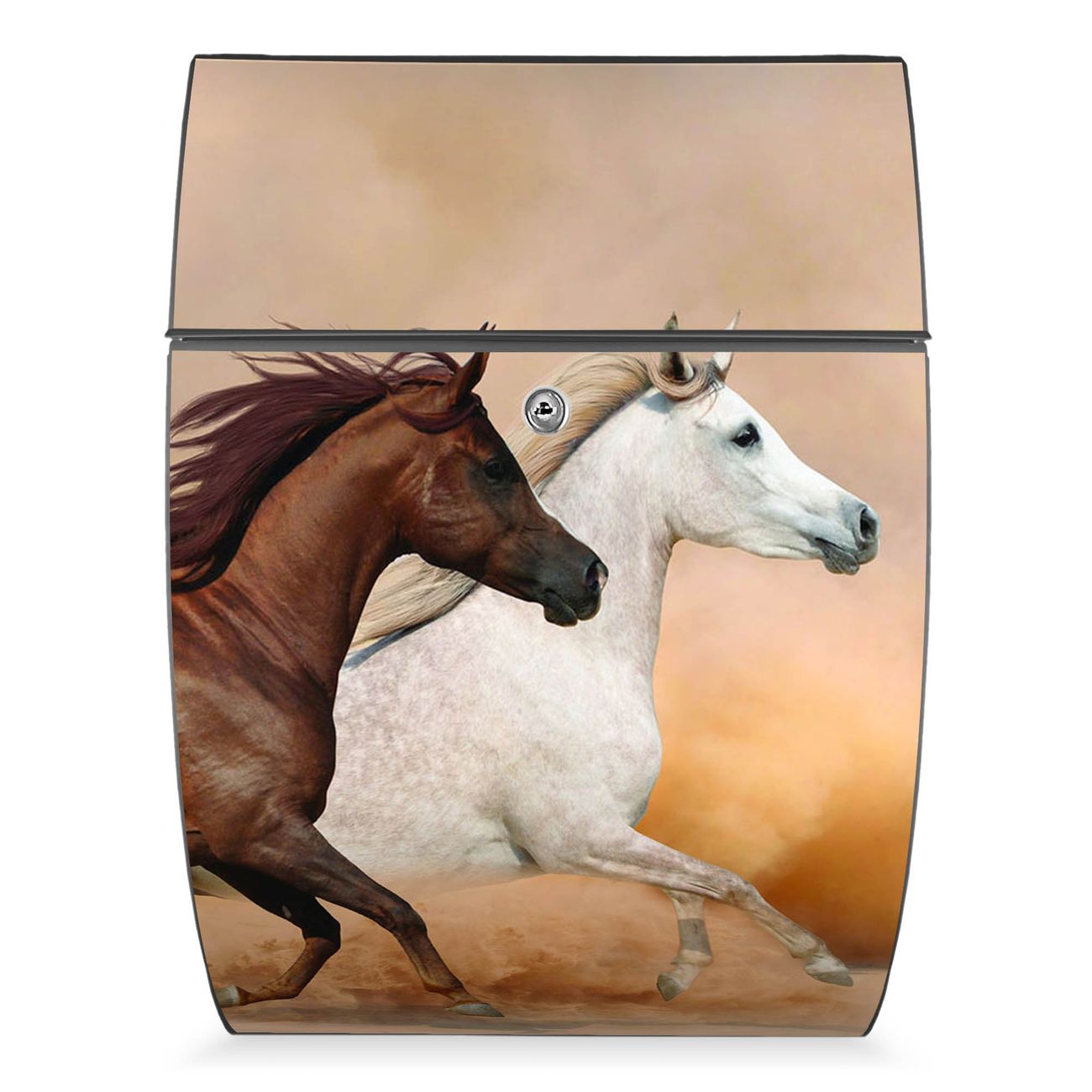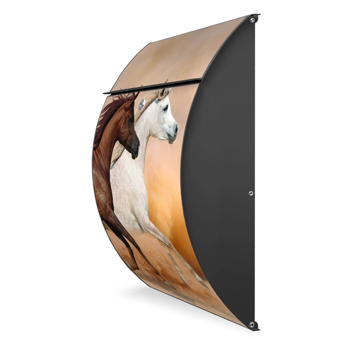 Der Burg Wächter Design Briefkasten mit Motiv Wilde Pferde bietet Ihnen mit seinem Fassungsvermögen genügend Platz auch für große A4 Sendungen. Auf Wunsch können Sie bei uns den passenden Ständer kaufen und so aus dem Wandbriefkasten einen Standbriefkasten machen.