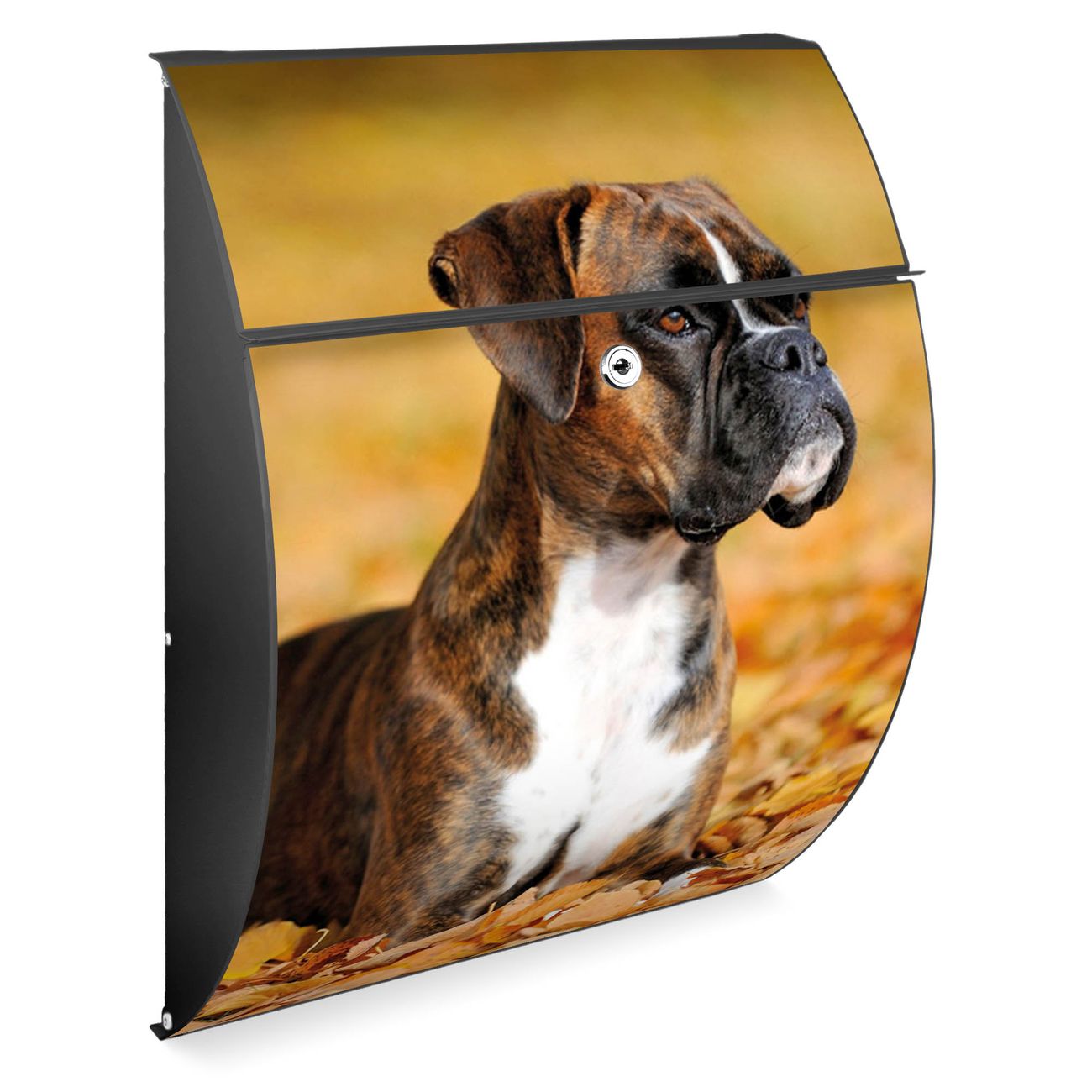 FUNKTION: DESIGN: Das Modell Riviera mit Motiv Wilhelm hat ein sehr ansprechendes und zeitloses Design. Heben Sie Sich von der tristen grauen Masse ab, ohne auf Funktionalität zu verzichten. Der integrierte Öffnungsstopp ermöglicht eine einfache Handhabung beim Entnehmen der Post. DETAILS: Der Postkasten besteht aus vollflächig verzinktem Stahl welcher in Anthrazit lackiert wurde. Das Motiv besteht aus einer wetter- und UV-festen Folie, die mit einem Schutzlaminat überzogen ist, durch die Ihren Briefkasten zusätzlich vor Kratzern geschützt ist. Sie erhalten 2 Schlüssel sowie das passende Montagematerial. NUTZEN: Sie können den Briefkasten sowohl als Wandbriefkasten montieren oder einen passenden Ständer kaufen und als Standbriefkasten einbetonieren. Die Größe bietet genügend Platz für Sendungen aller Art, der Einwurf fasst auch größere A4 Sendungen. BANJADO: Ihr Briefkasten wird in Sachsen in einer kleinen Manufaktur von Hand veredelt. Die Motivfolie ist lösungsmittelfrei und schutzlaminiert, dies sorgt für einen langen Halt. Wir legen großen Wert auf die Verbindung von Funktionalität und Design. Sie erhalten Handarbeit aus Sachsen.