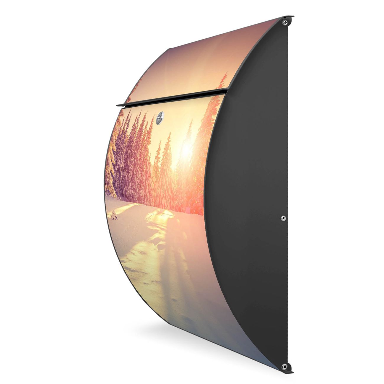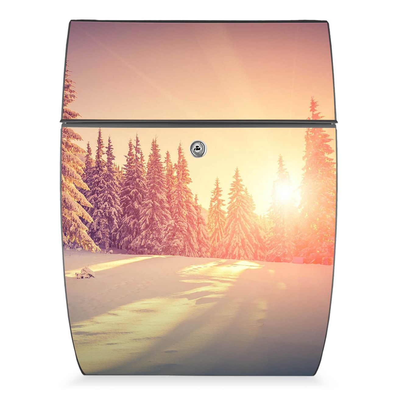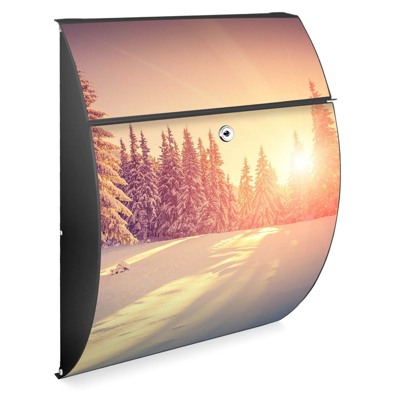 Der Burg Wächter Design Briefkasten mit Motiv Winterabend bietet Ihnen mit seinem Fassungsvermögen genügend Platz auch für große A4 Sendungen. Auf Wunsch können Sie bei uns den passenden Ständer kaufen und so aus dem Wandbriefkasten einen Standbriefkasten machen.