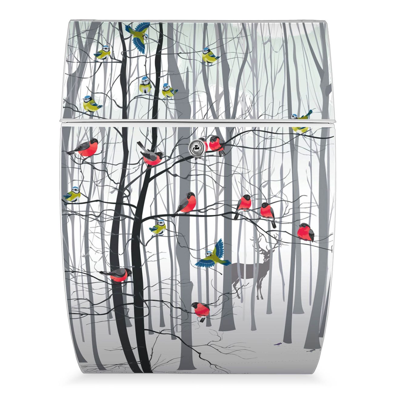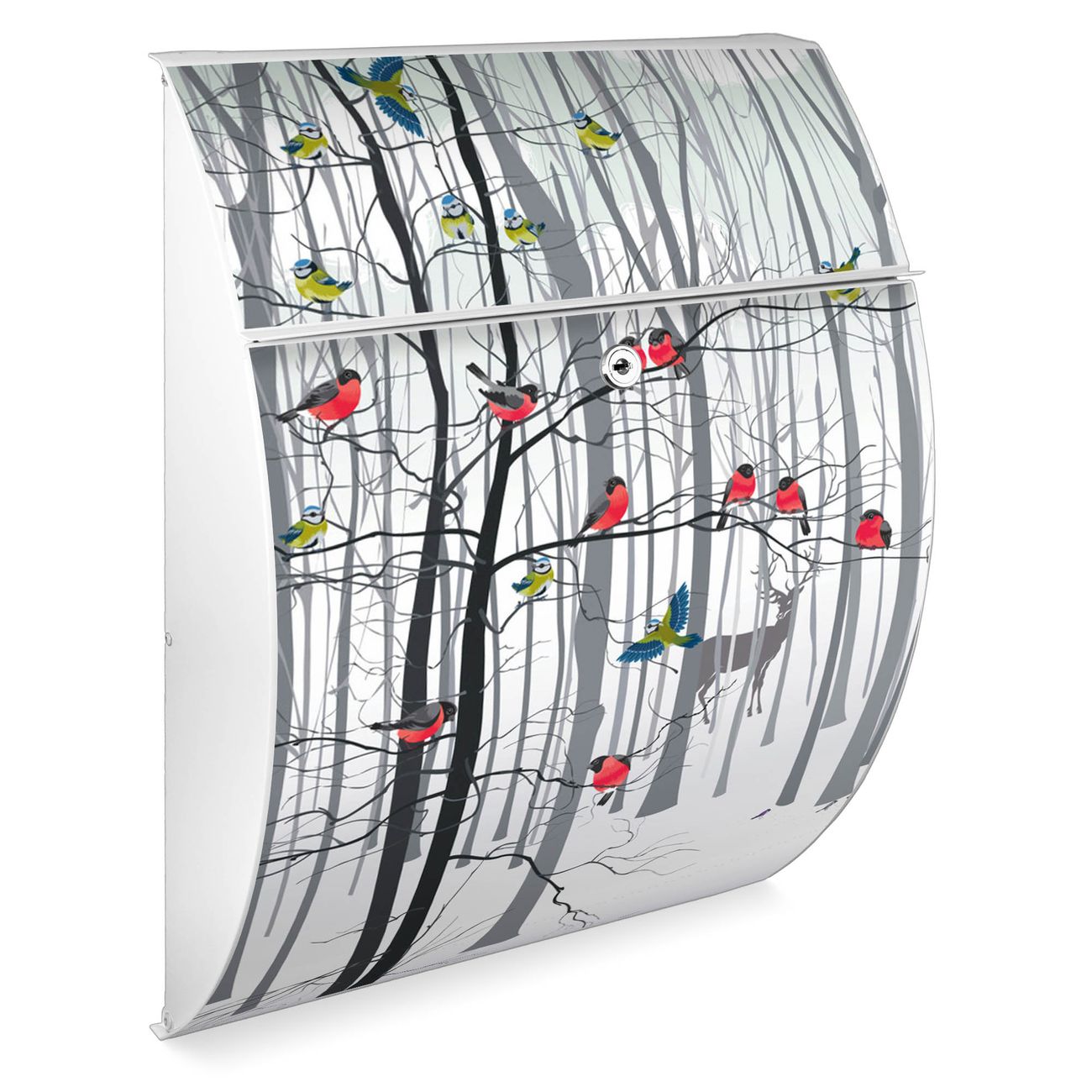 Der weiße Burg Wächter Design Briefkasten mit Motiv Winterwald bietet Ihnen mit seinem Fassungsvermögen genügend Platz auch für große A4 Sendungen. Auf Wunsch können Sie bei uns auch den passenden Ständer kaufen und so aus dem Wandbriefkasten einen Standbriefkasten machen.