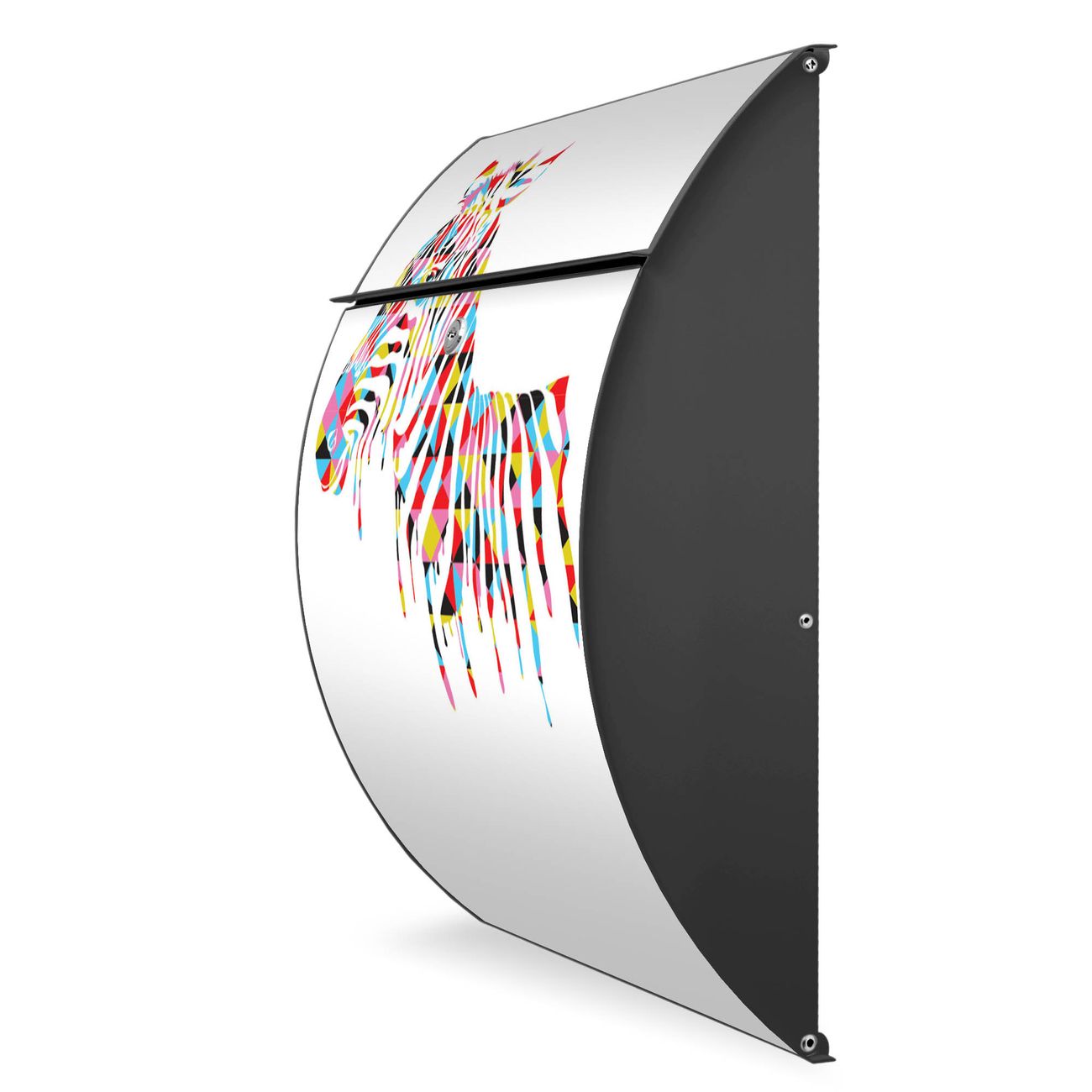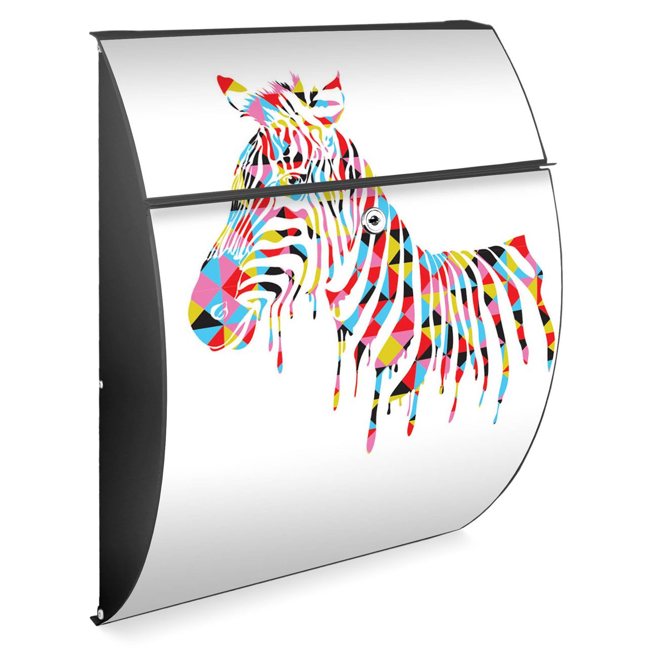 Der Burg Wächter Design Briefkasten mit Motiv Zebra bietet Ihnen mit seinem Fassungsvermögen genügend Platz auch für große A4 Sendungen. Auf Wunsch können Sie bei uns den passenden Ständer kaufen und so aus dem Wandbriefkasten einen Standbriefkasten machen.