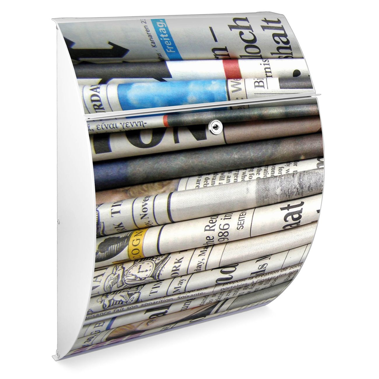 Der weiße Burg Wächter Design Briefkasten mit Motiv Zeitungen bietet Ihnen mit seinem Fassungsvermögen genügend Platz auch für große A4 Sendungen. Auf Wunsch können Sie bei uns auch den passenden Ständer kaufen und so aus dem Wandbriefkasten einen Standbriefkasten machen.