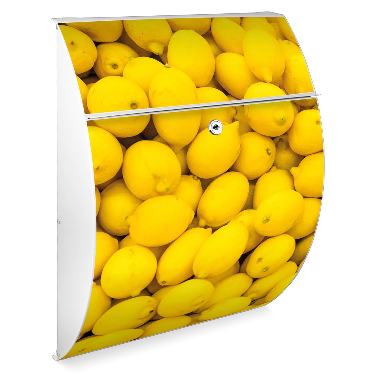 FUNKTION: DESIGN: Das Modell Riviera mit Motiv Zitronen hat ein sehr ansprechendes und zeitloses Design. Heben Sie Sich von der tristen grauen Masse ab, ohne auf Funktionalität zu verzichten. Der integrierte Öffnungsstopp ermöglicht eine einfache Handhabung beim Entnehmen der Post. DETAILS: Der Postkasten besteht aus vollflächig verzinktem Stahl welcher in weiß lackiert wurde. Das Motiv besteht aus einer wetter- und UV-festen Folie, die mit einem Schutzlaminat überzogen ist, durch die Ihren Briefkasten zusätzlich vor Kratzern geschützt ist. Sie erhalten 2 Schlüssel sowie das passende Montagematerial. NUTZEN: Sie können den Briefkasten sowohl als Wandbriefkasten montieren oder einen passenden Ständer kaufen und als Standbriefkasten einbetonieren. Die Größe bietet genügend Platz für Sendungen aller Art, der Einwurf fasst auch größere A4 Sendungen. BANJADO: Ihr Briefkasten wird in Sachsen in einer kleinen Manufaktur von Hand veredelt. Die Motivfolie ist lösungsmittelfrei und schutzlaminiert, dies sorgt für einen langen Halt. Wir legen großen Wert auf die Verbindung von Funktionalität und Design. Sie erhalten Handarbeit aus Sachsen.