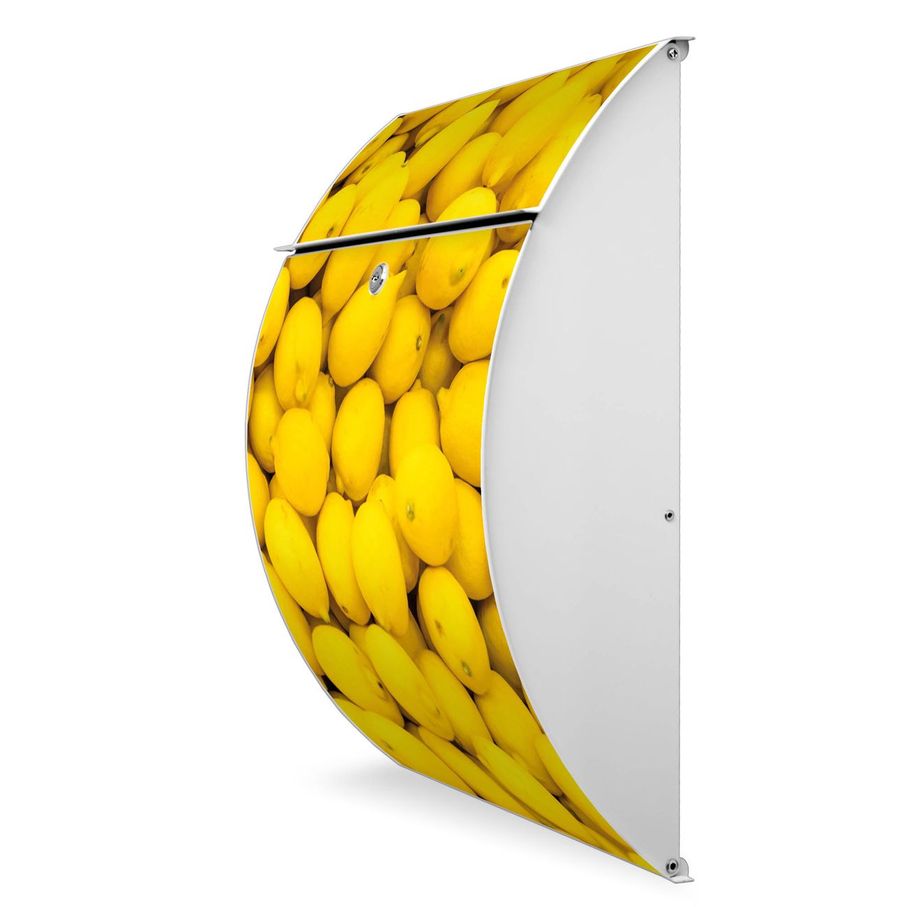 Der weiße Burg Wächter Design Briefkasten mit Motiv Zitronen bietet Ihnen mit seinem Fassungsvermögen genügend Platz auch für große A4 Sendungen. Auf Wunsch können Sie bei uns auch den passenden Ständer kaufen und so aus dem Wandbriefkasten einen Standbriefkasten machen.