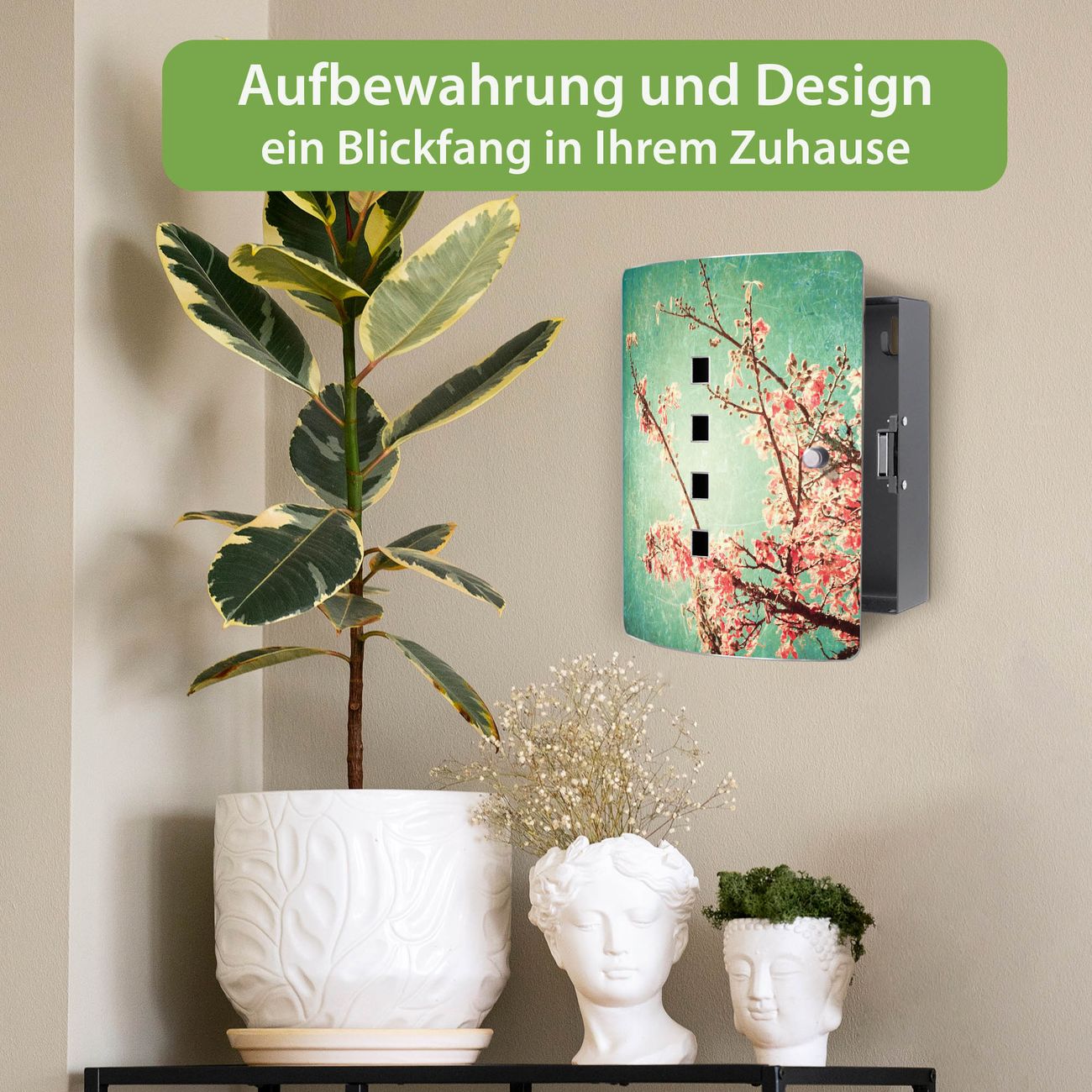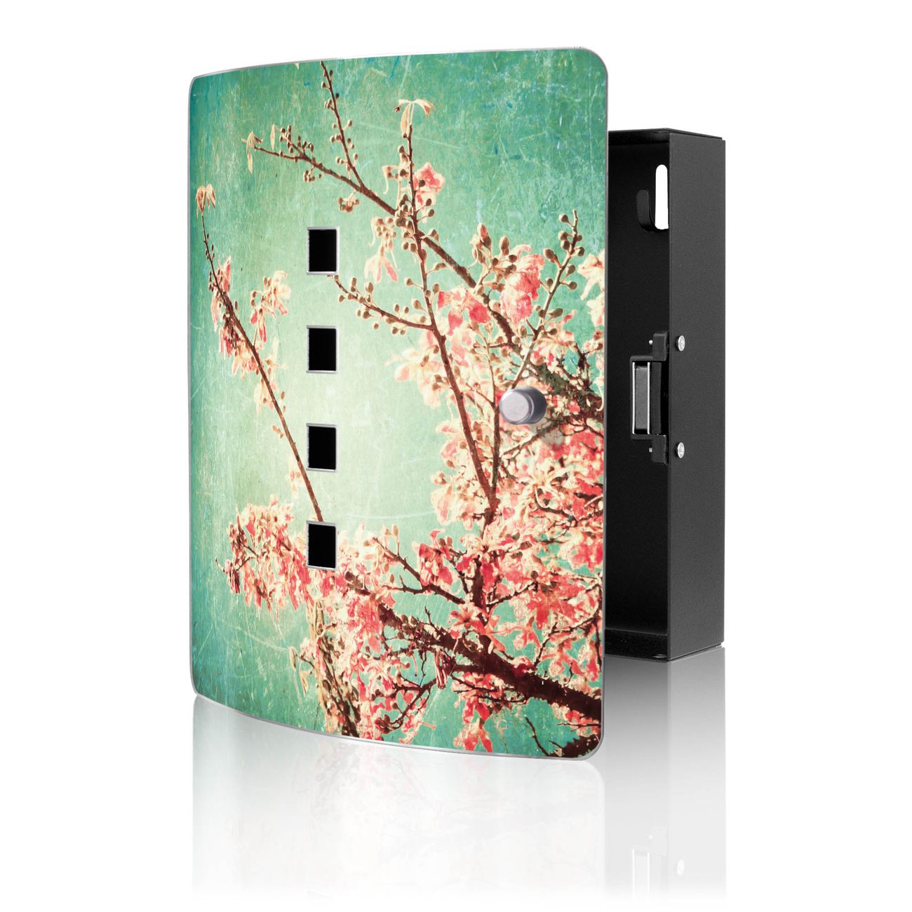 Funktion / Nutzen: Die leicht geschwungene Edelstahltür ist mit einer hochwertigen Motivfolie und dem Motiv Motiv Vintage Herbst kaschiert. Ein praktischer Magnetverschluss ermöglicht Ihnen ein schnelles Öffnen und Schließen. Befestigt wird der Schlüsselkasten an 2 Stellen auf der Rückseite, passendes Montagematerial fügen wir bereits bei.