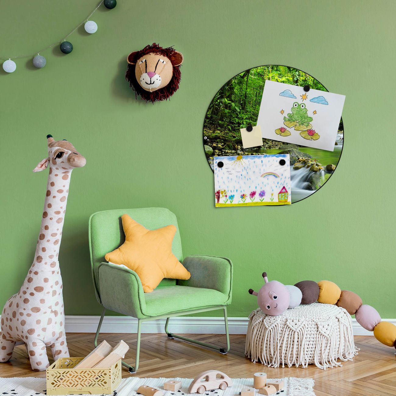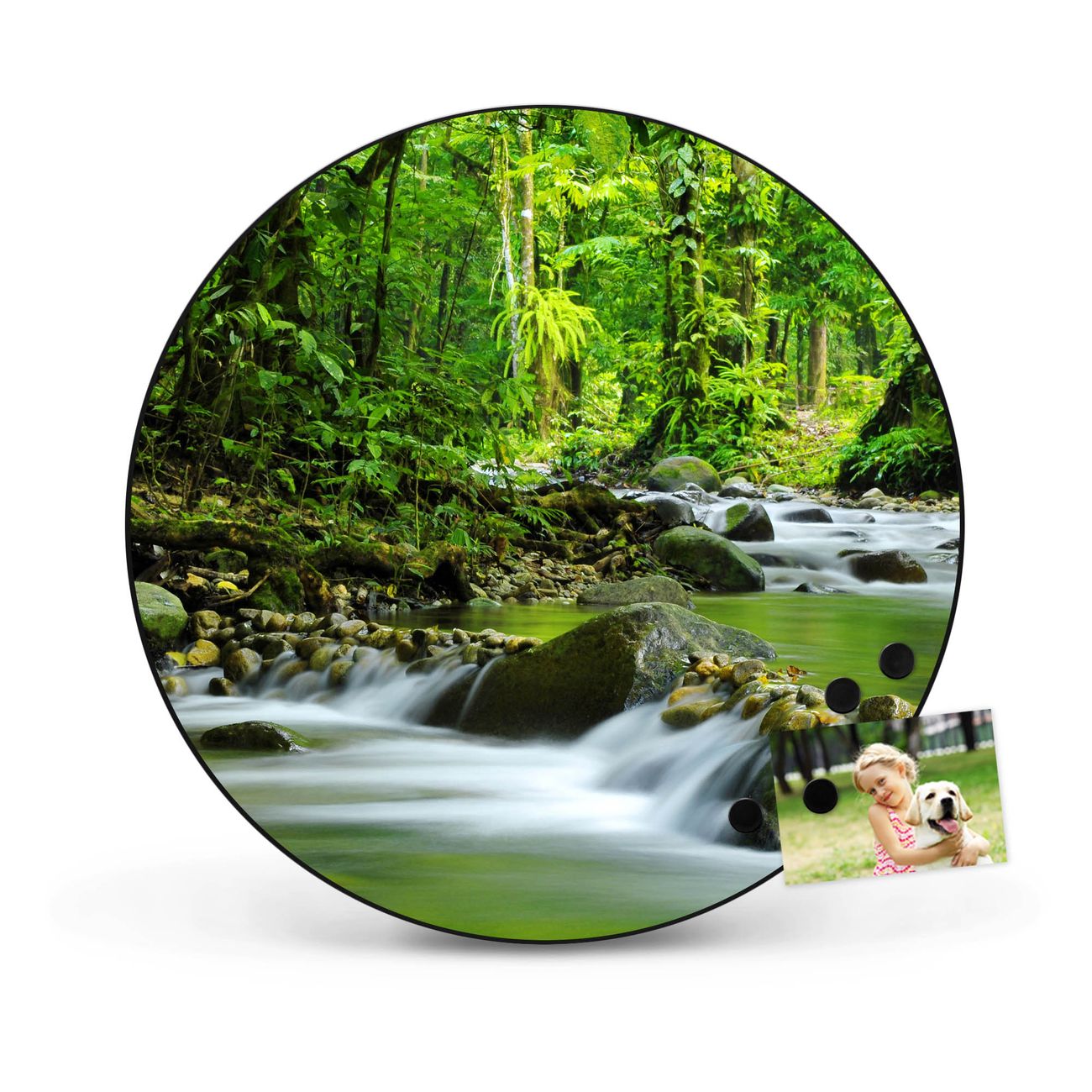 FUNKTION / DESIGN Die banjado Magnettafel mit dem Motiv Motiv Rauschender Bach bringt Ordnung in Ihr Zettelchaos. Fotos, Termine, Notizen oder Rezepte lassen Sich hier stilvoll mit Magneten ordnen, Sie behalten alles im Blick. Die Design Magnetwand ist beschreibbar und wieder abwischbar. Mit dieser Pinnwand haben Sie auch ohne Notizen und Magneten ein schönes Dekoelement. Das Format bietet Ihnen ausreichend Platz um alle wichtigen Informationen im Blick zu behalten. DETAILS / NUTZEN Die magnetische Metall Pinnwand besteht aus schwarz lackiertem Stahl. Sie hat einen Durchmesser von 47cm. Es befinden sich an den Seiten zwei vorgefertigte Löcher die eine schnelle und unkomplizierte Anbringung ermöglichen. Das Motiv ist mit einem seidenmatten Laminat versehen und schützt so zusätzlich vor Kratzern. Es halten alle handelsüblichen Magneten daran. Wir sind ein kleines Team aus dem Herzen von Sachsen. Wir fertigen alle Artikel von Hand für Sie an, Sie erhalten keine preiswerte Importware. Auf Wunsch können Sie auch Ihr eigenes Foto auf die Magnettafel aufbringen, schreiben Sie uns an.