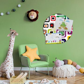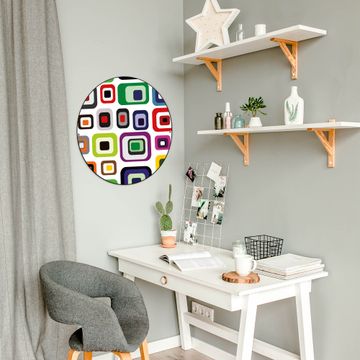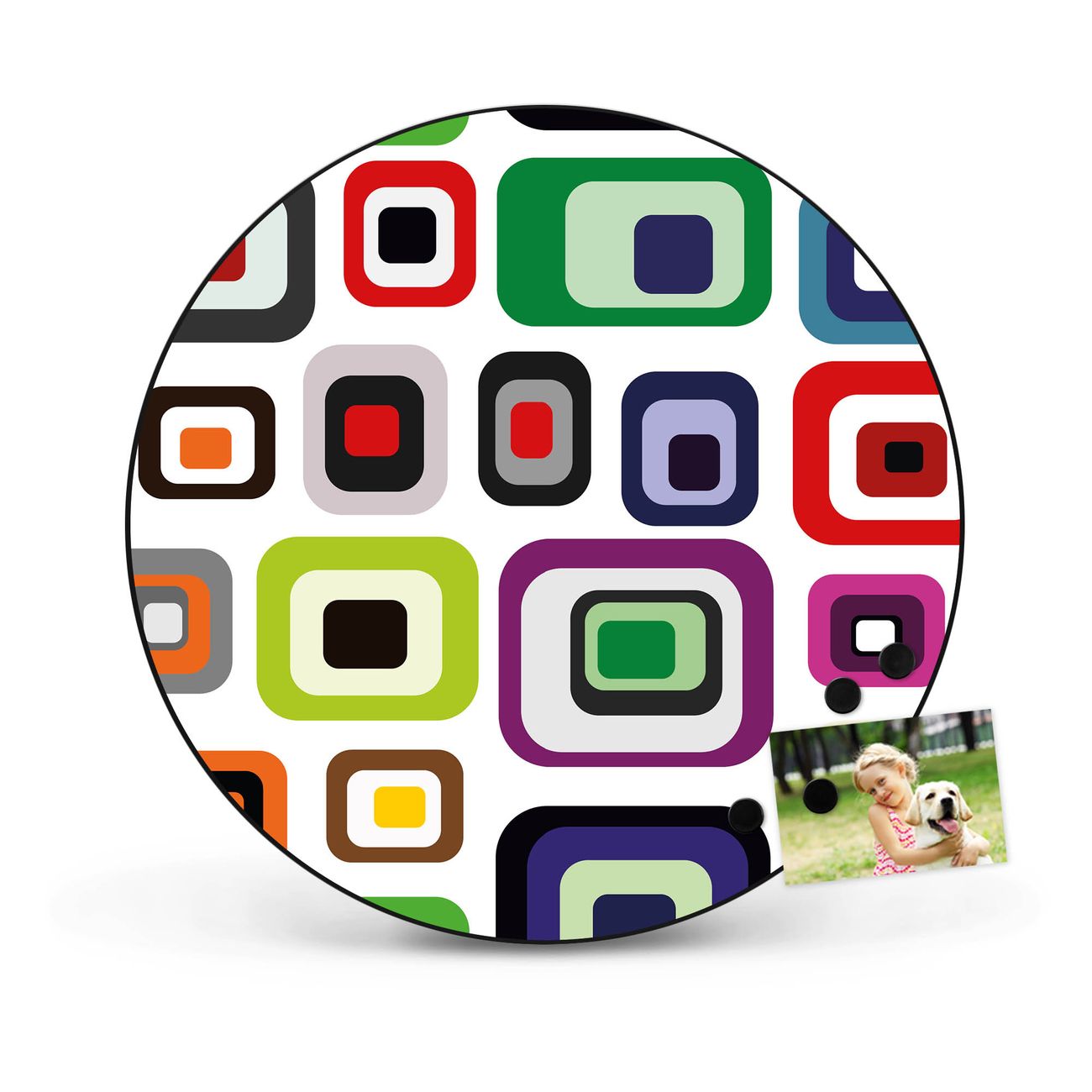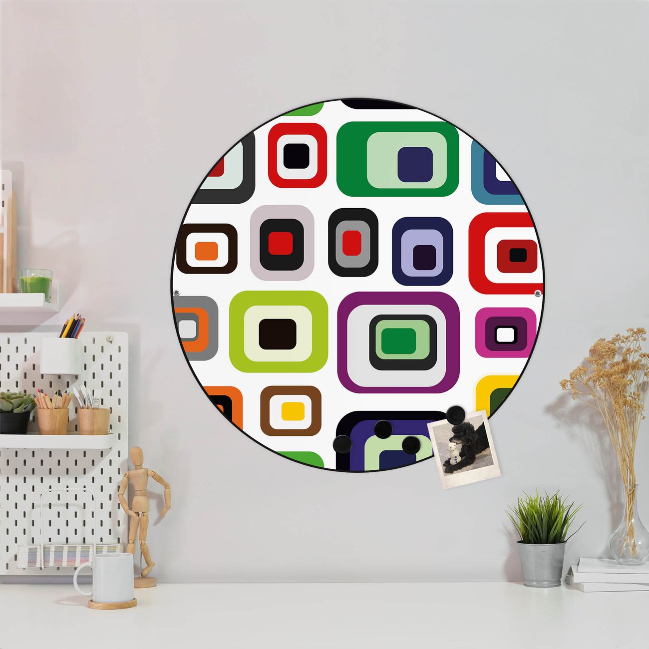 FUNKTION / DESIGN Die banjado Magnettafel mit dem Motiv Motiv Retro 2 bringt Ordnung in Ihr Zettelchaos. Fotos, Termine, Notizen oder Rezepte lassen Sich hier stilvoll mit Magneten ordnen, Sie behalten alles im Blick. Die Design Magnetwand ist beschreibbar und wieder abwischbar. Mit dieser Pinnwand haben Sie auch ohne Notizen und Magneten ein schönes Dekoelement. Das Format bietet Ihnen ausreichend Platz um alle wichtigen Informationen im Blick zu behalten. DETAILS / NUTZEN Die magnetische Metall Pinnwand besteht aus schwarz lackiertem Stahl. Sie hat einen Durchmesser von 47cm. Es befinden sich an den Seiten zwei vorgefertigte Löcher die eine schnelle und unkomplizierte Anbringung ermöglichen. Das Motiv ist mit einem seidenmatten Laminat versehen und schützt so zusätzlich vor Kratzern. Es halten alle handelsüblichen Magneten daran. Wir sind ein kleines Team aus dem Herzen von Sachsen. Wir fertigen alle Artikel von Hand für Sie an, Sie erhalten keine preiswerte Importware. Auf Wunsch können Sie auch Ihr eigenes Foto auf die Magnettafel aufbringen, schreiben Sie uns an.