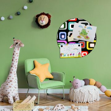 FUNKTION / DESIGN Die banjado Magnettafel mit dem Motiv Motiv Retro bringt Ordnung in Ihr Zettelchaos. Fotos, Termine, Notizen oder Rezepte lassen Sich hier stilvoll mit Magneten ordnen, Sie behalten alles im Blick. Die Design Magnetwand ist beschreibbar und wieder abwischbar. Mit dieser Pinnwand haben Sie auch ohne Notizen und Magneten ein schönes Dekoelement. Das Format bietet Ihnen ausreichend Platz um alle wichtigen Informationen im Blick zu behalten. DETAILS / NUTZEN Die magnetische Metall Pinnwand besteht aus schwarz lackiertem Stahl. Sie hat einen Durchmesser von 47cm. Es befinden sich an den Seiten zwei vorgefertigte Löcher die eine schnelle und unkomplizierte Anbringung ermöglichen. Das Motiv ist mit einem seidenmatten Laminat versehen und schützt so zusätzlich vor Kratzern. Es halten alle handelsüblichen Magneten daran. Wir sind ein kleines Team aus dem Herzen von Sachsen. Wir fertigen alle Artikel von Hand für Sie an, Sie erhalten keine preiswerte Importware. Auf Wunsch können Sie auch Ihr eigenes Foto auf die Magnettafel aufbringen, schreiben Sie uns an.