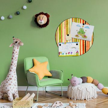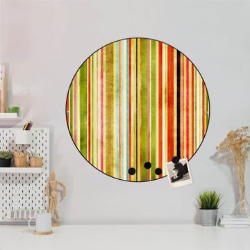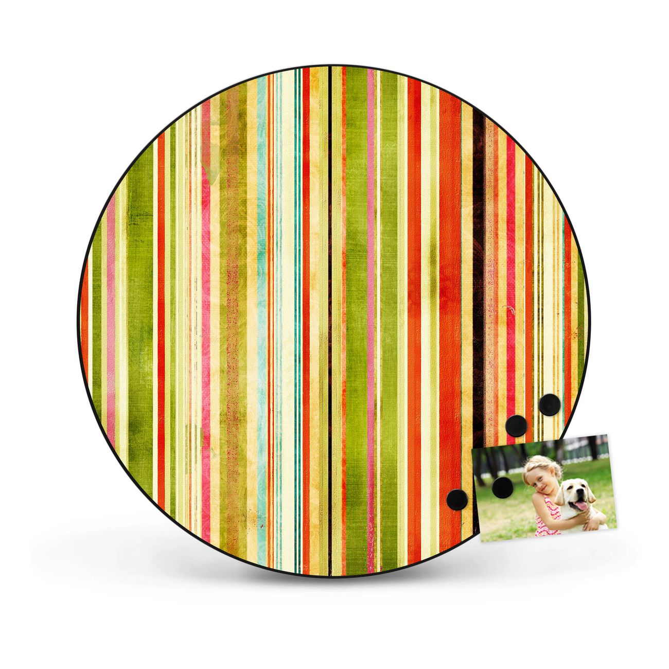 FUNKTION / DESIGN Die banjado Magnettafel mit dem Motiv Motiv Streifen bringt Ordnung in Ihr Zettelchaos. Fotos, Termine, Notizen oder Rezepte lassen Sich hier stilvoll mit Magneten ordnen, Sie behalten alles im Blick. Die Design Magnetwand ist beschreibbar und wieder abwischbar. Mit dieser Pinnwand haben Sie auch ohne Notizen und Magneten ein schönes Dekoelement. Das Format bietet Ihnen ausreichend Platz um alle wichtigen Informationen im Blick zu behalten. DETAILS / NUTZEN Die magnetische Metall Pinnwand besteht aus schwarz lackiertem Stahl. Sie hat einen Durchmesser von 47cm. Es befinden sich an den Seiten zwei vorgefertigte Löcher die eine schnelle und unkomplizierte Anbringung ermöglichen. Das Motiv ist mit einem seidenmatten Laminat versehen und schützt so zusätzlich vor Kratzern. Es halten alle handelsüblichen Magneten daran. Wir sind ein kleines Team aus dem Herzen von Sachsen. Wir fertigen alle Artikel von Hand für Sie an, Sie erhalten keine preiswerte Importware. Auf Wunsch können Sie auch Ihr eigenes Foto auf die Magnettafel aufbringen, schreiben Sie uns an.