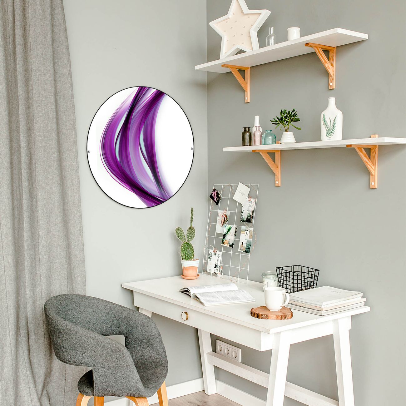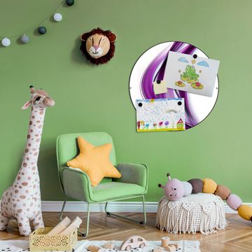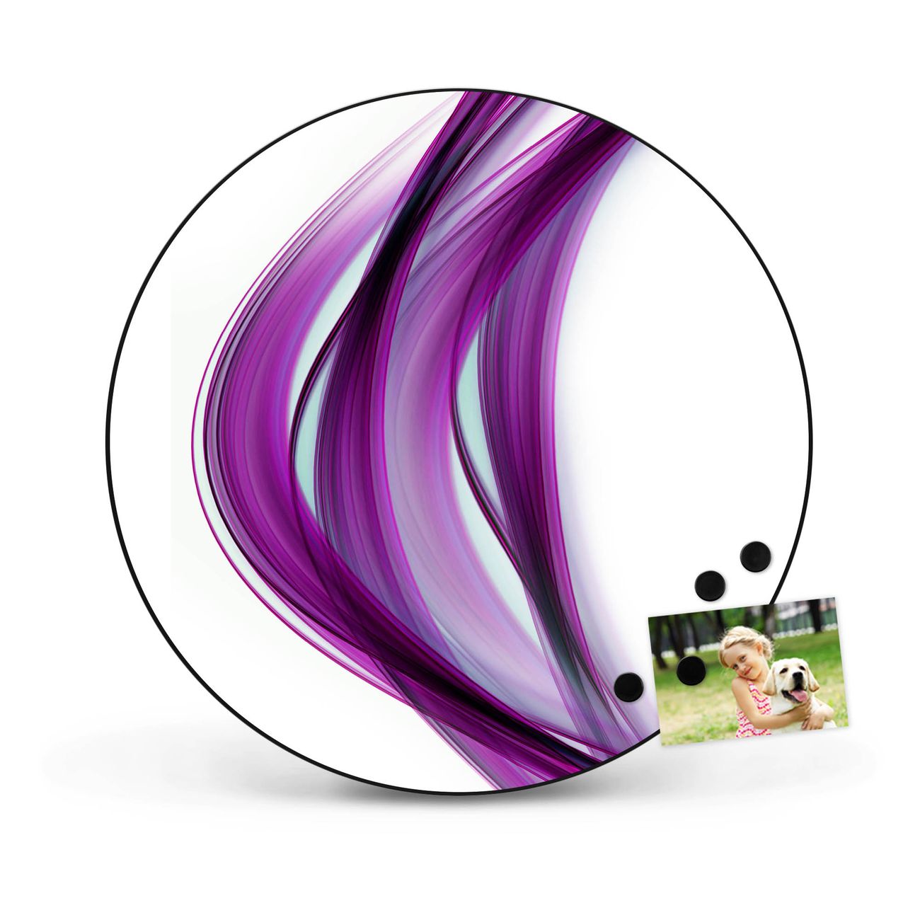 FUNKTION / DESIGN Die banjado Magnettafel mit dem Motiv Motiv Violet Element bringt Ordnung in Ihr Zettelchaos. Fotos, Termine, Notizen oder Rezepte lassen Sich hier stilvoll mit Magneten ordnen, Sie behalten alles im Blick. Die Design Magnetwand ist beschreibbar und wieder abwischbar. Mit dieser Pinnwand haben Sie auch ohne Notizen und Magneten ein schönes Dekoelement. Das Format bietet Ihnen ausreichend Platz um alle wichtigen Informationen im Blick zu behalten. DETAILS / NUTZEN Die magnetische Metall Pinnwand besteht aus schwarz lackiertem Stahl. Sie hat einen Durchmesser von 47cm. Es befinden sich an den Seiten zwei vorgefertigte Löcher die eine schnelle und unkomplizierte Anbringung ermöglichen. Das Motiv ist mit einem seidenmatten Laminat versehen und schützt so zusätzlich vor Kratzern. Es halten alle handelsüblichen Magneten daran. Wir sind ein kleines Team aus dem Herzen von Sachsen. Wir fertigen alle Artikel von Hand für Sie an, Sie erhalten keine preiswerte Importware. Auf Wunsch können Sie auch Ihr eigenes Foto auf die Magnettafel aufbringen, schreiben Sie uns an.