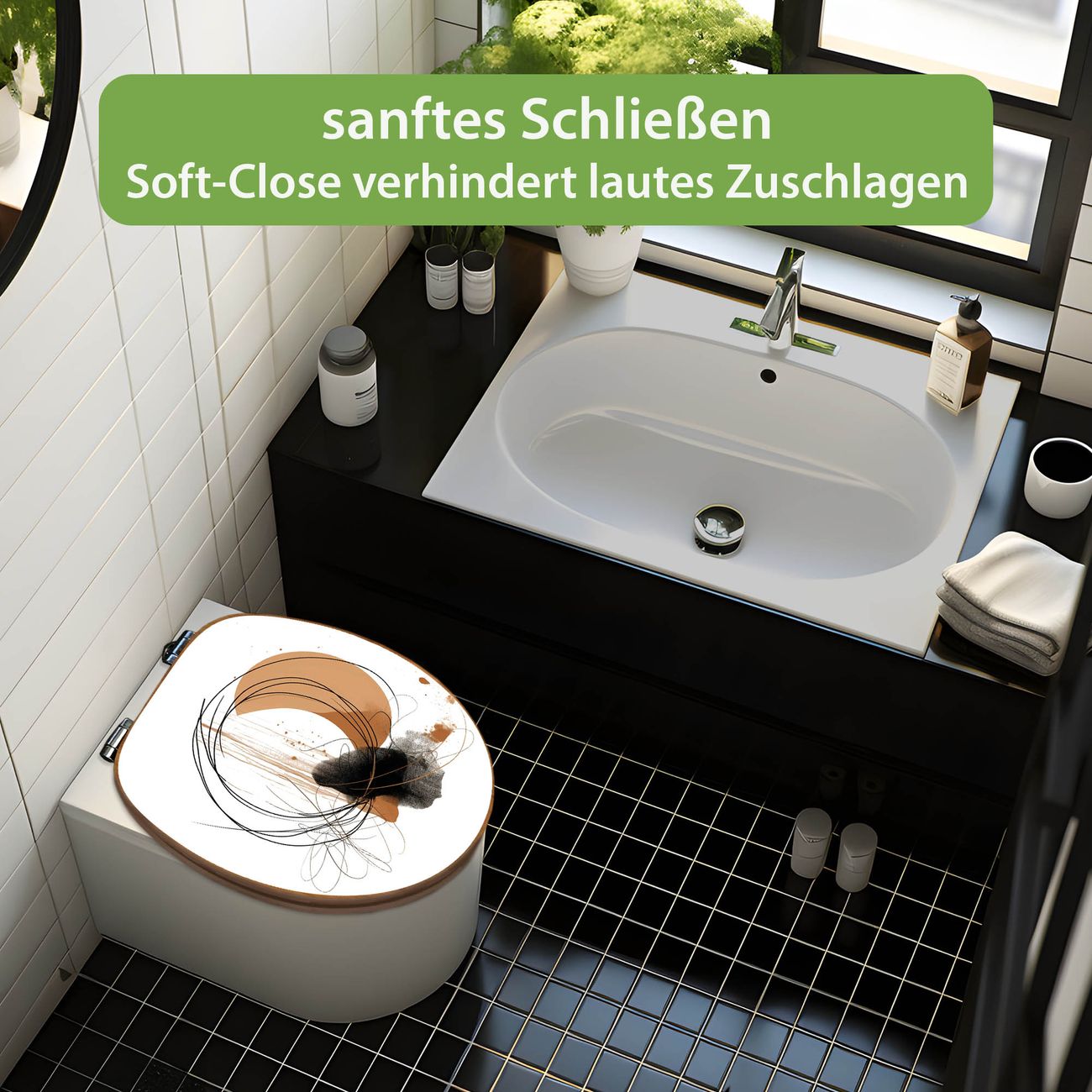 Design WC-Sitz Bambus Absenkautomatik Motiv Abstrakte Kreisformen