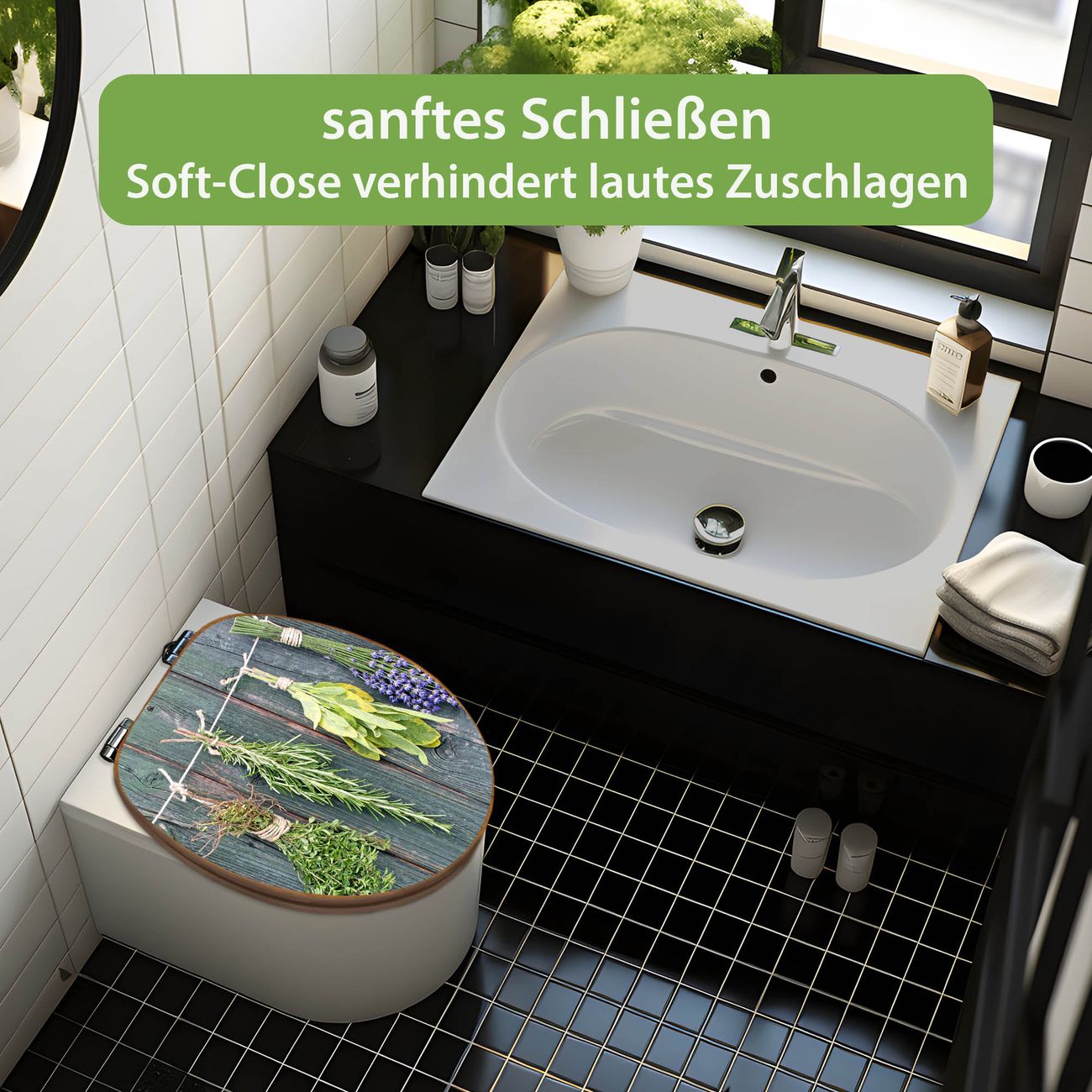 Design WC-Sitz Bambus Absenkautomatik Motiv Acht Kräuter
