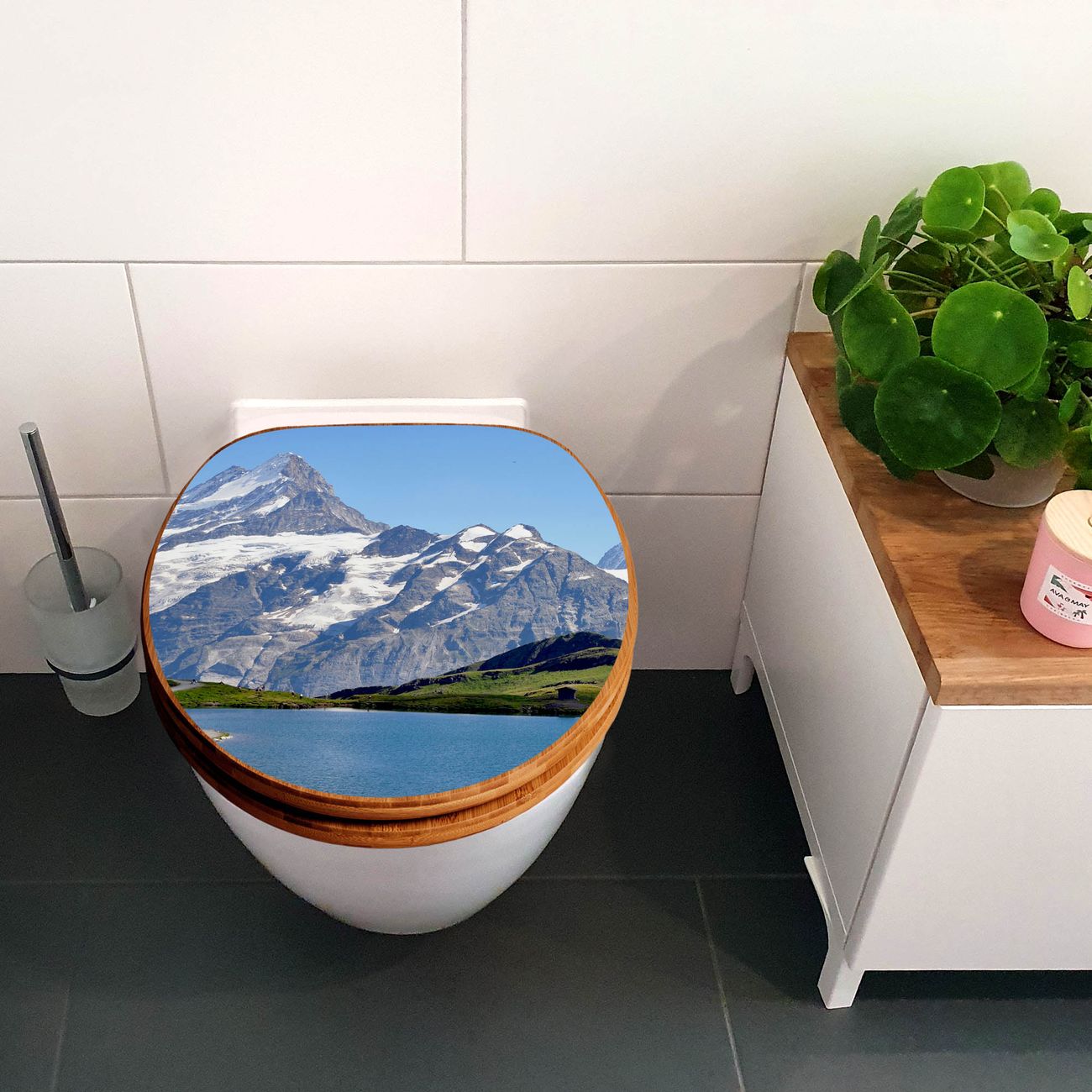 Design WC-Sitz Bambus Absenkautomatik Motiv Alpen