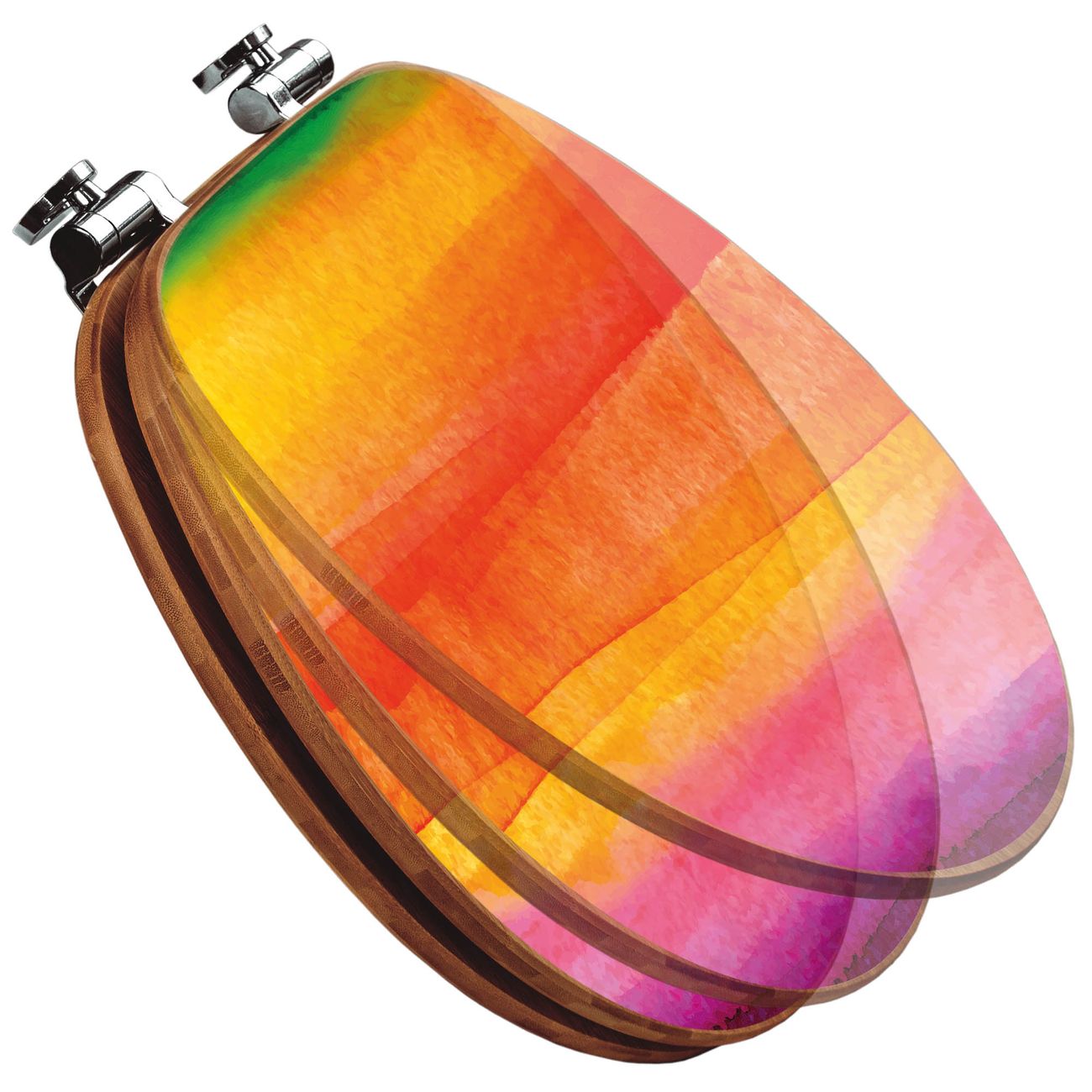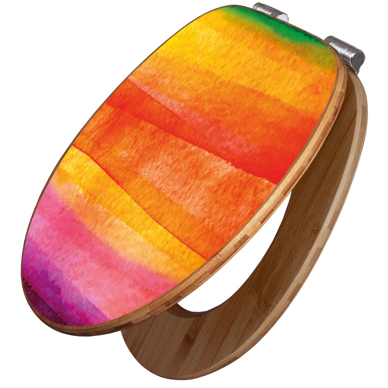 Mit dem banjado Toilettensitz in Bambus verbinden Sie Design und Funktionalität. Sie erhalten den WC-Sitz mit bewährter Holz Qualität und Universal Scharnieren. Das Motiv Motiv Aquarell besteht aus einer schutzlaminierten Motivfolie, die durch das Schutzlaminat zusätzlich vor Kratzern schützt. Durch diesen Motivdruck wird der WC-Sitz zu einem Blickfang in Ihrem Bad.