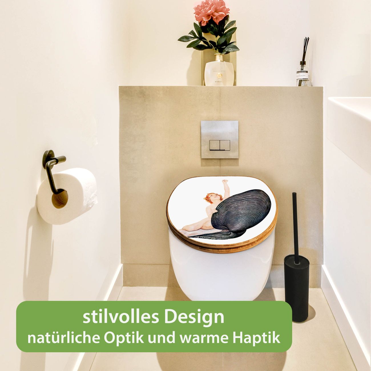 Design WC-Sitz Bambus Absenkautomatik Motiv Aufbruch aus der Muschel Vintage
