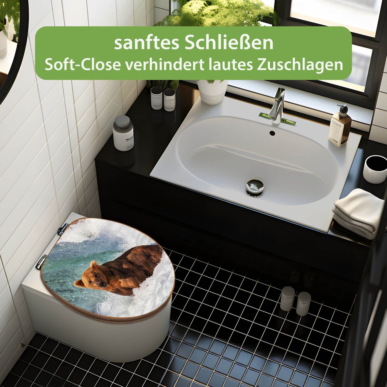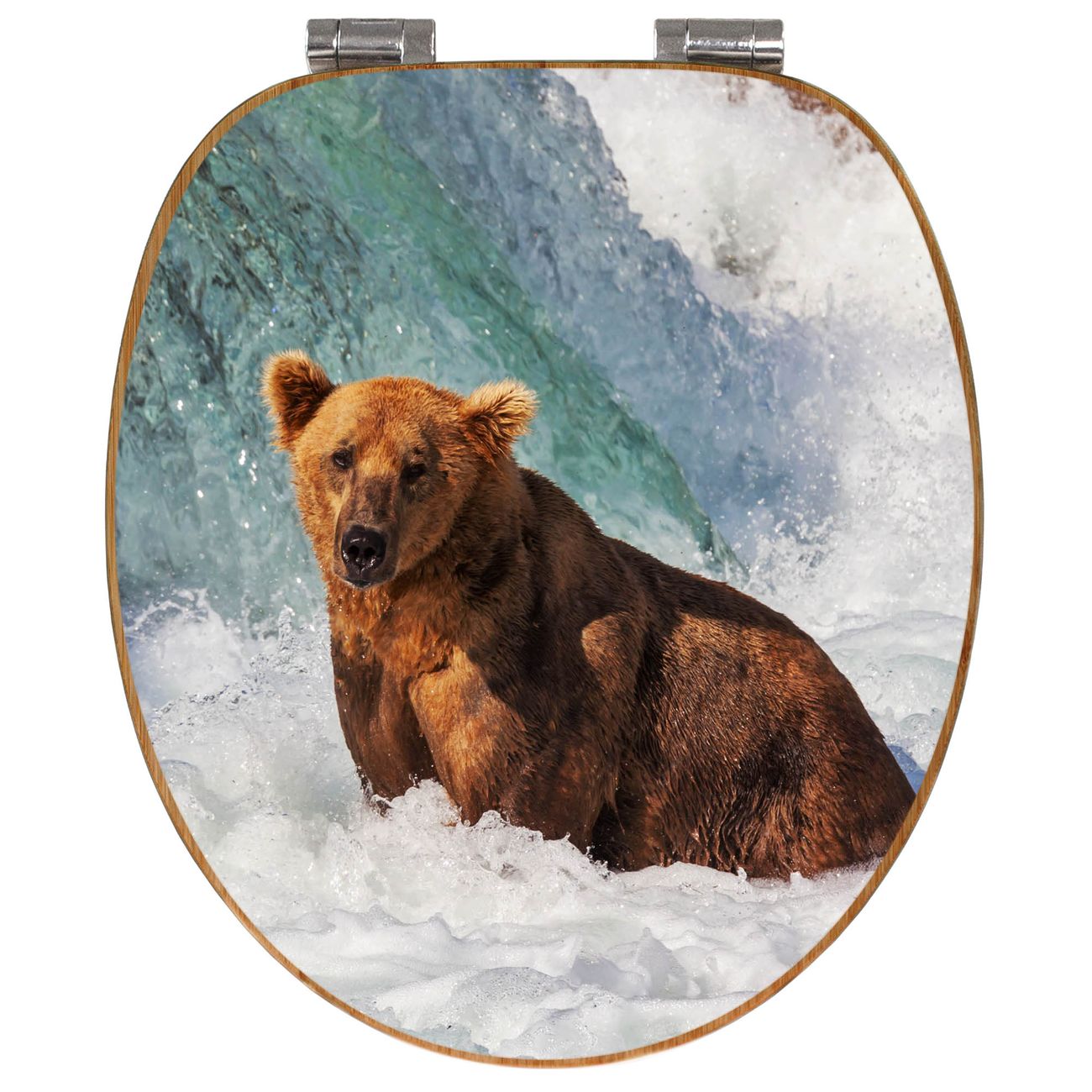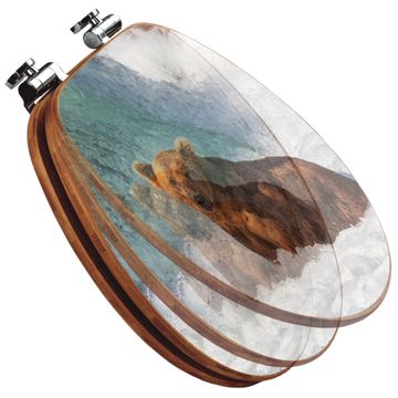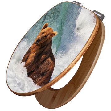 Design WC-Sitz Bambus Absenkautomatik Motiv Bär Im Wasser