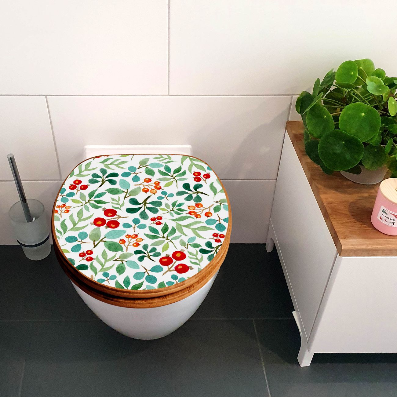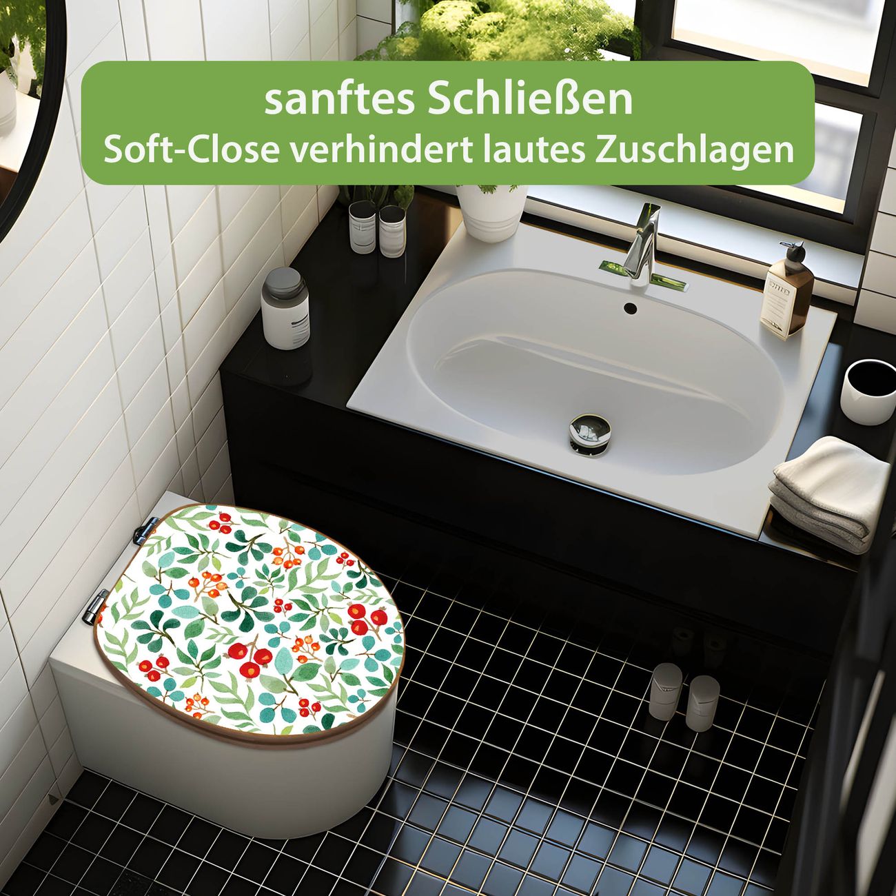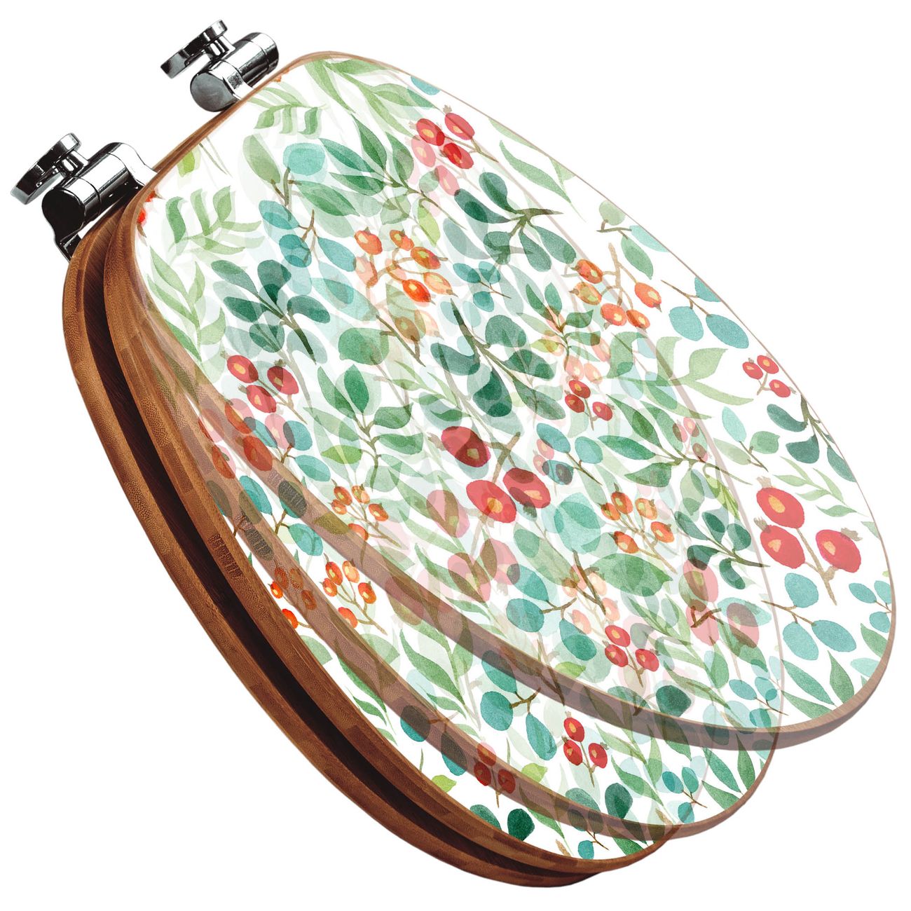 Design WC-Sitz Bambus Absenkautomatik Motiv Beeren und Blätter